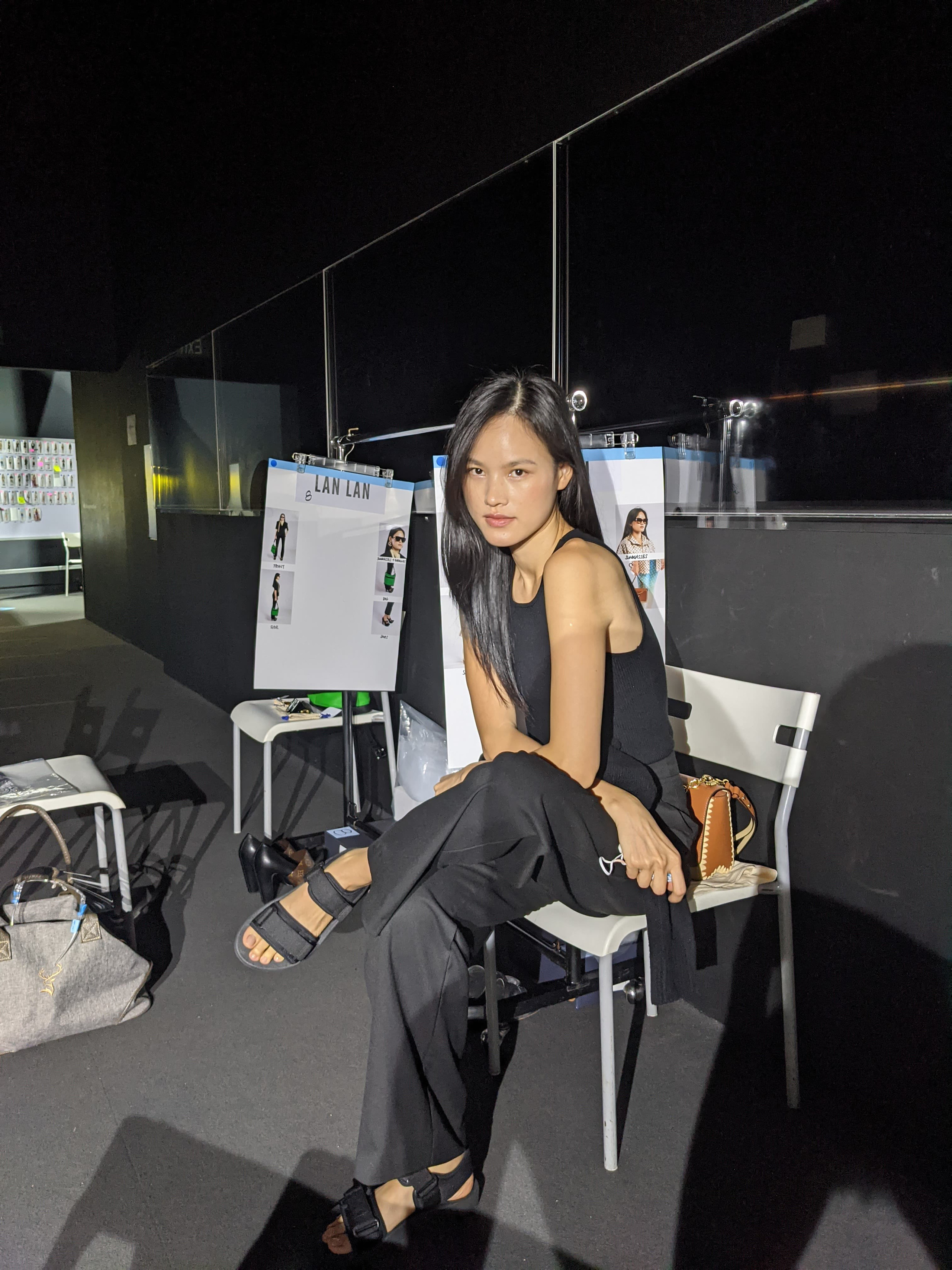 Do đây là show diễn lớn nên rất nghiêm ngặt, mọi đồ dùng cá nhân của người mẫu như túi hay điện thoại đều bị giữ lại ở ngoài, đề phòng những sự cố đáng tiếc. Và bởi vậy nên nàng mẫu không có cơ hội tác nghiệp được nhiều.