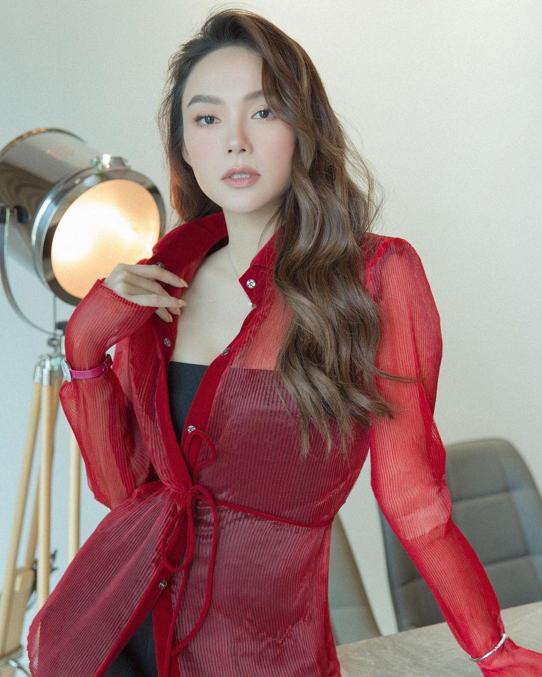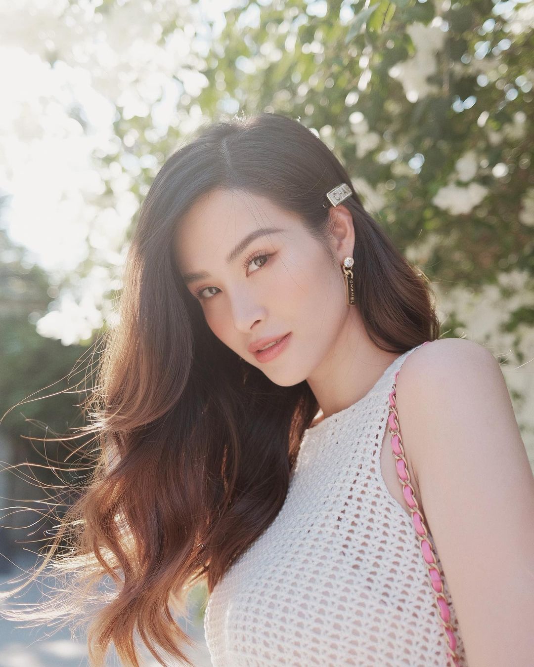 Sự khác biệt lớn nhất của các mỹ nhân Việt khi để tóc xoăn tỉa layer chính là cách để mái/rẽ ngôi. Có những mỹ nhân sẽ chọn tóc rẽ ngôi giữa sang trọng, người thì chải ngôi lệch yêu kiều còn trường hợp của Minh Hằng thì thi thoảng, cô còn để mái lưa thưa rất ngọt ngào, xinh tươi. Bên cạnh đó, các mỹ nhân Việt sẽ không quên tạo độ phồng cho chân tóc, từ đó mái tóc thêm bồng bềnh, gương mặt cũng thêm xinh đẹp, mỹ miều.