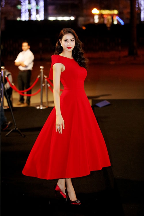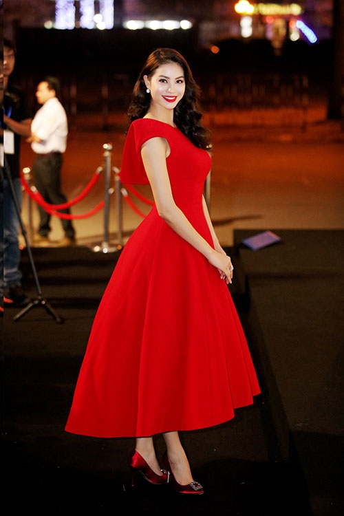 Xuất hiện trong một sự kiện thời trang tại Hà Nội, HH Phạm Hương trở thành tâm điểm chú ý khi diện chiếc đầm màu đỏ hết sức nổi bật.
