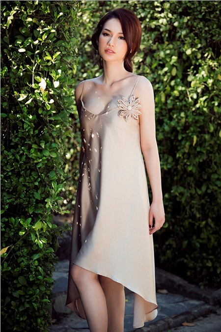 Trong loạt ảnh mới, với những bộ cánh mỏng tang có phần trễ nải - 'gái một con' Quỳnh Chi phô diễn nét đẹp mong manh tựa sương sớm khiến độc giả không thể rời mắt.