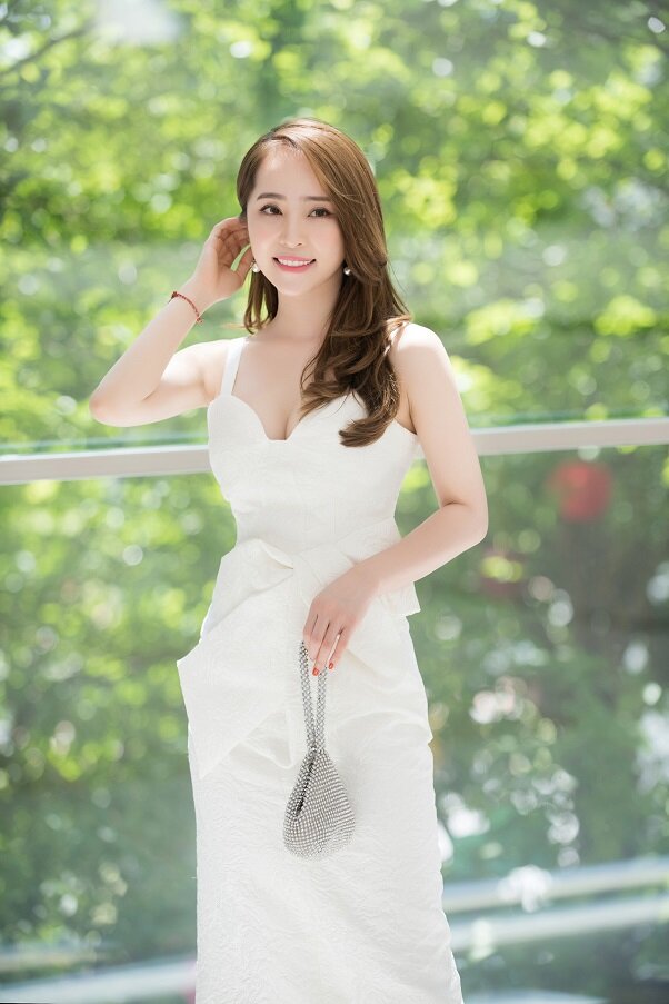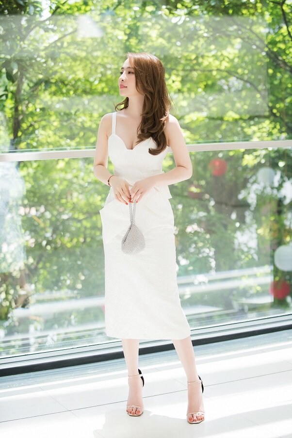 Nàng diễn viên xinh đẹp 'cá sấu chúa' Quỳnh Nga xuất hiện tại một sự kiện trong bộ váy trắng muốt tôn vòng 1 quyến rũ cực kì.