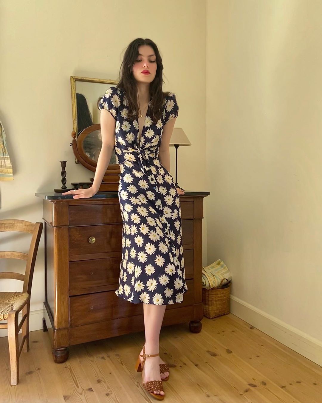 Nếu nói đến thiết kế hiện thân của nét dịu dàng lãng mạn, váy hoa chính là item đầu tiên xuất hiện trong danh sách ấy. Lãng mạng dịu êm, những thiết kế váy hoa gắn liền với hình ảnh của các cô nàng Paris xinh đẹp dịu dáng. Những ngày Thu nắng nhẹ, váy hoa trở thành món đồ mà mọi cô nàng đều ưu ái. Những ngày có gió mùa, bạn chỉ cần khoác thêm chiếc trench coat hay áo khoác mỏng là đủ ấm áp rồi.