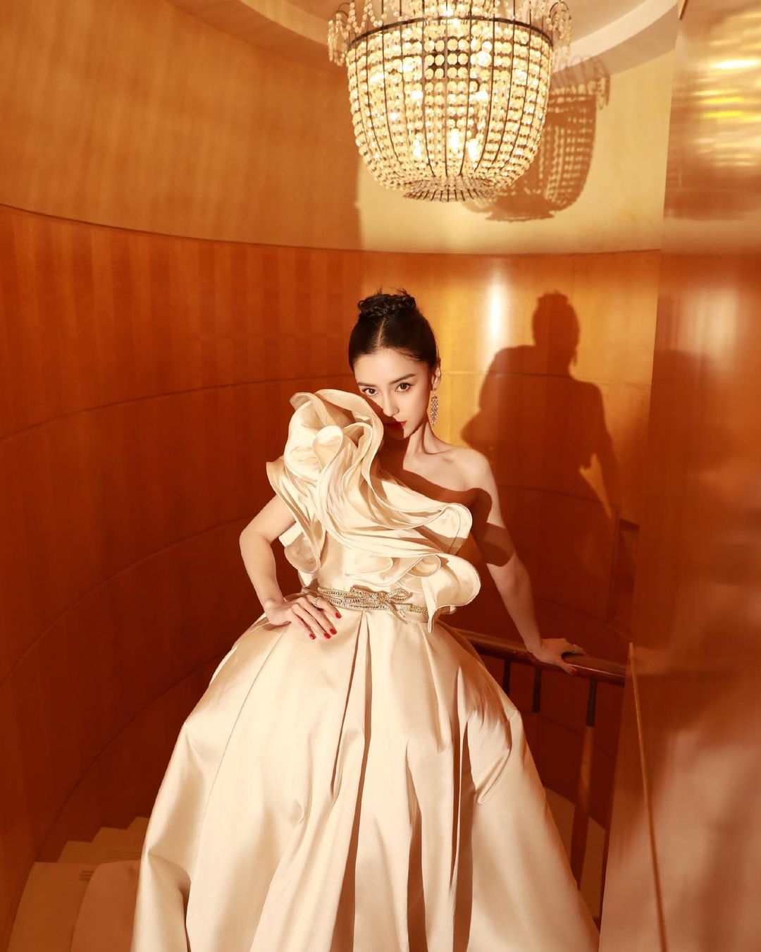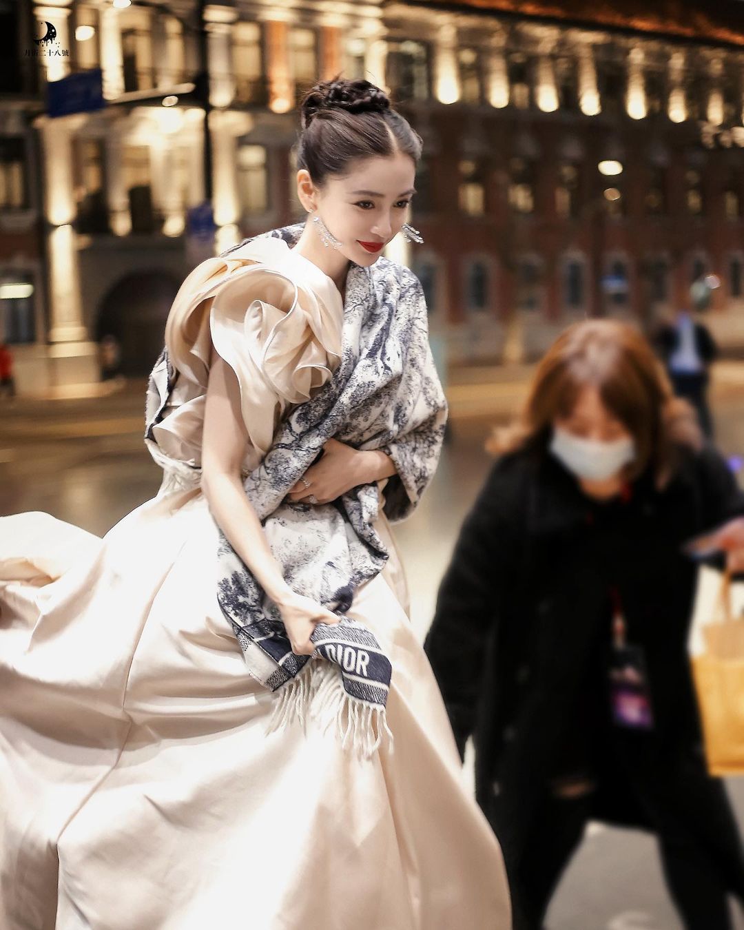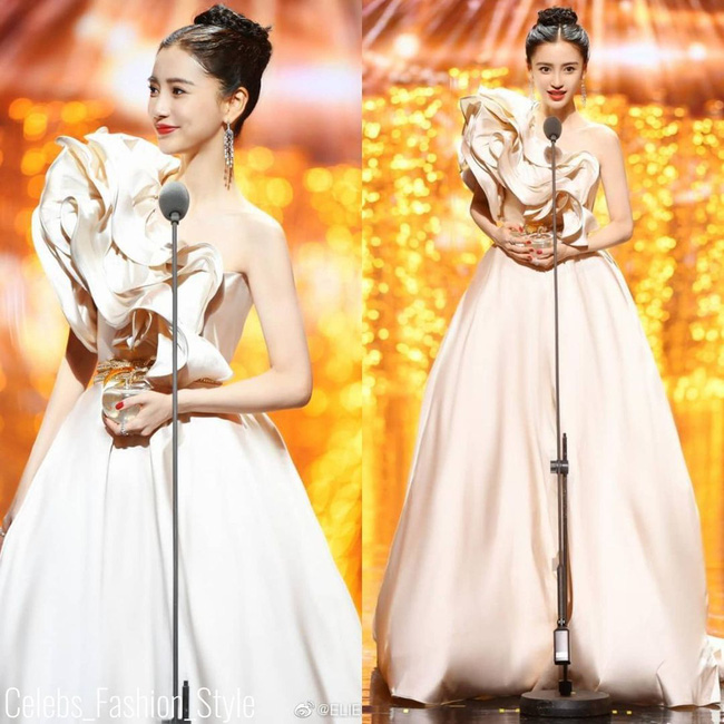 Rút kinh nghiệm từ lần mặc trước, tại sự kiện lễ trao giải Phim truyền hình chất lượng của đài Đông Phương, Angela Baby cũng được ưu ái diện thiết kế mới nhất nằm trong BST Haute Couture của nhà mốt Elie Saab. Sự lựa chọn lần này ghi điểm hơn vì phần thân trên váy không quá nhiều chi tiết xếp bèo bồng xòe, bên cạnh đó điểm nhấn lệch vai cũng giúp cho Angela Baby xinh đẹp hơn bội phần.