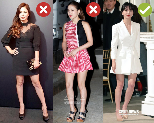 Không ai trên đời này là hoàn hảo và Song Hye Kyo cũng vậy. Dù sở hữu nhan sắc thuộc hàng "tường thành" của làng giải trí xứ Hàn, cô cũng có một vài nhược điểm, ví như đôi chân ngắn và hơi thô. Với điểm yếu này, nếu chị em biết cách chọn giày dép hợp lý thì sẽ ít người nhận ra và ngược lại, chọn sai giày dép thì cặp chân kém nuột sẽ càng nổi bật hơn. Và rút kinh nghiệm từ phong cách của Song Hye Kyo, chị em sẽ nhận ra được những đôi giày nào nên và không nên diện nếu sở hữu đôi chân hơi thô và ngắn.
