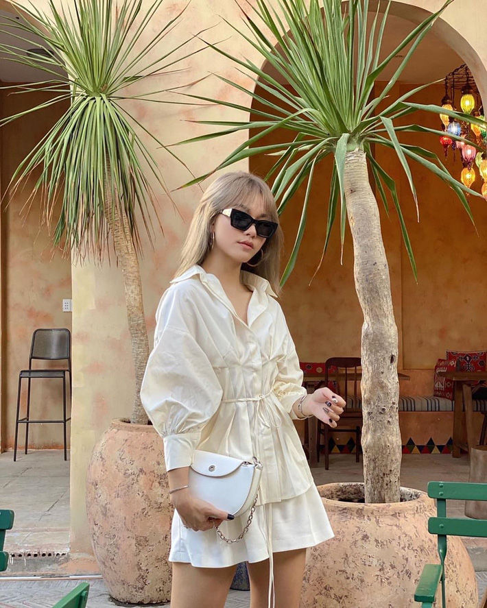 Trắng và be xưa giờ đã là đôi bạn thân bổ trợ rất tốt cho nhau rồi nên hiển nhiên, việc mix áo blouse trắng với chân váy hoặc quần short màu be cũng ổn cực kỳ ổn. Đây đều là những tông màu đảm bảo độ sang và hạn chế độ sến cho chính chủ. Để an toàn nhất, bạn nên chọn chân váy hoặc quần có phom dáng đơn giản thôi, đừng bèo nhún nữa nhé, kẻo lại đập chan chát với chiếc áo điệu đà đang mặc.