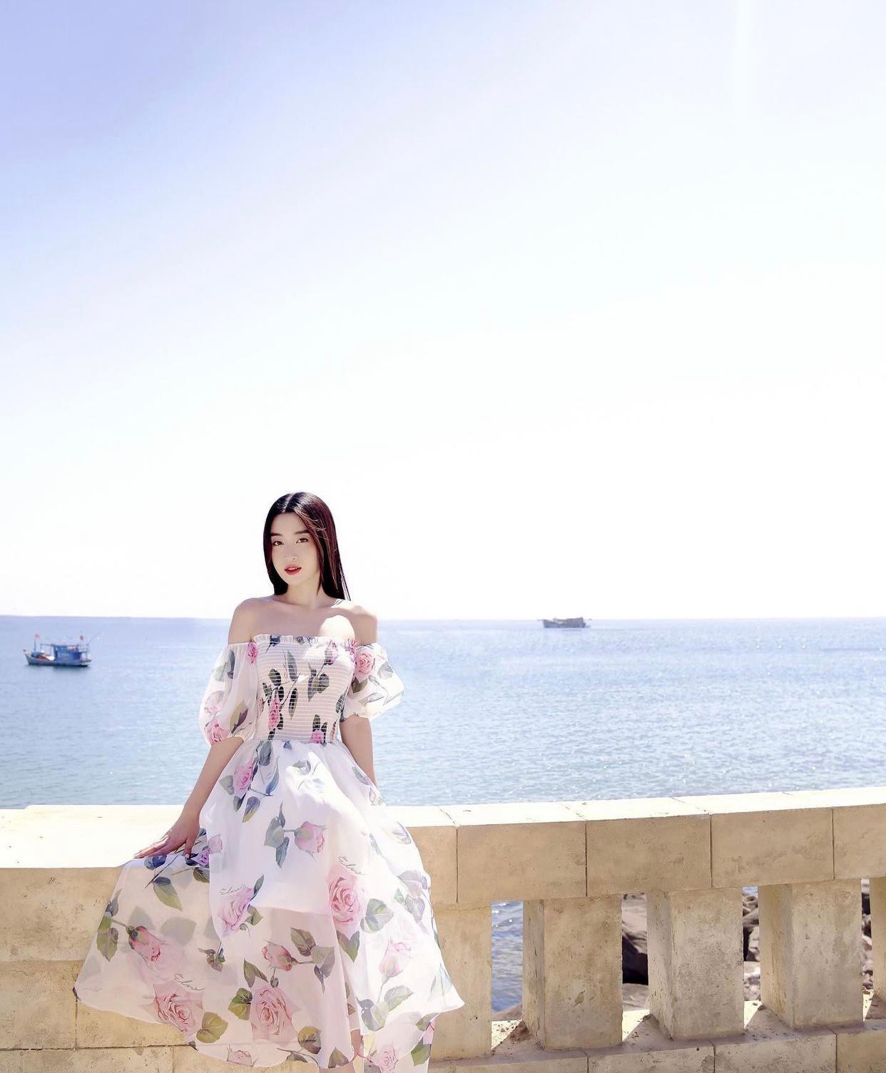 Đỗ Mỹ Linh đẹp tựa “nàng thơ” giữa khung cảnh biển xanh, nắng vàng thơ mộng. Bộ váy mỏng manh với chi tiết trễ vai tay bồng nhanh chóng thu hút ánh nhìn đồng thời mang lại nét yêu kiều quyến rũ cho người mặc. Với gu thời trang tinh tế mỹ nhân sinh năm 1996 được đánh giá ngày càng xinh đẹp, quyến rũ.