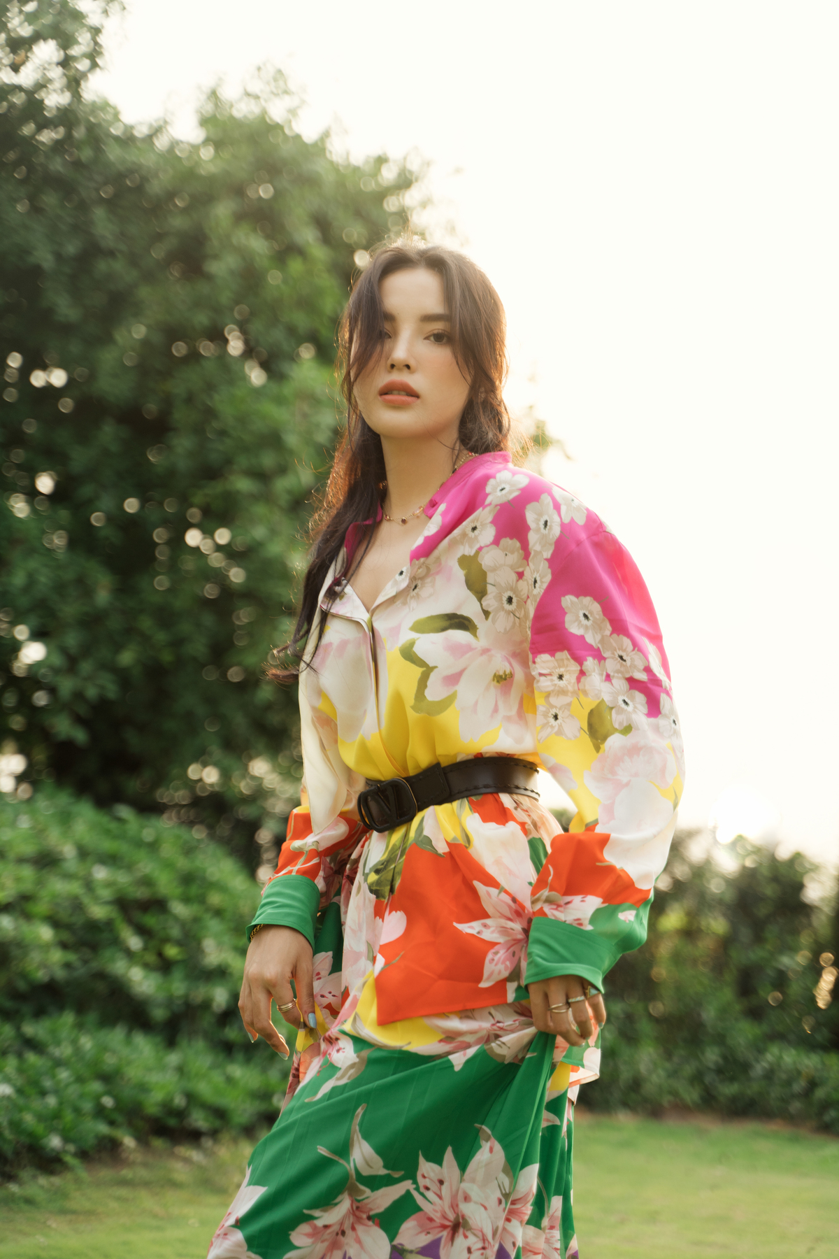 Kỳ Duyên nhận được mưa lời khen với bộ ảnh mới theo phong cách ngọt ngào, trẻ trung. Hoa hậu Việt Nam 2014 diện váy hoa, tóc xõa bồng bềnh và tạo dáng thoải mái. Cô khéo tạo điểm nhấn vào vòng eo với chiếc thắt lưng màu đen. Nét trong trẻo, dịu dàng của Kỳ Duyên khiến nhiều khán giả bất ngờ.