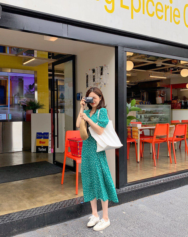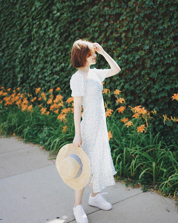 Công thức diện váy "ruột" của Selena quá đỗi xinh xắn và lãng mạn. Nhưng tuyệt nhất là ai cũng có thể áp dụng bộ đôi váy liền + giày sneakers này để hoàn thiện vẻ ngoài vừa trẻ trung, nữ tính và sang xịn. Nếu bạn muốn mình trông gầy đi và cao hơn, hãy chọn váy có chi tiết cổ chữ V, nhấn eo và chắc chắn, vóc dáng của bạn sẽ mi nhon hơn hẳn, chiều cao cũng được cải thiện dù bạn có đang diện giày bệt đi chăng nữa.