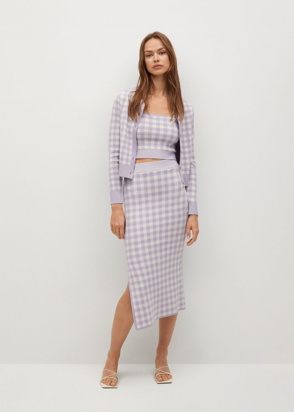 Thích áo hoạ tiết gingham thì item của Mango dành cho bạn. Diện crop top và cardigan matchy hoạ tiết sẽ giúp vẻ ngoài hay ho, nịnh mắt.