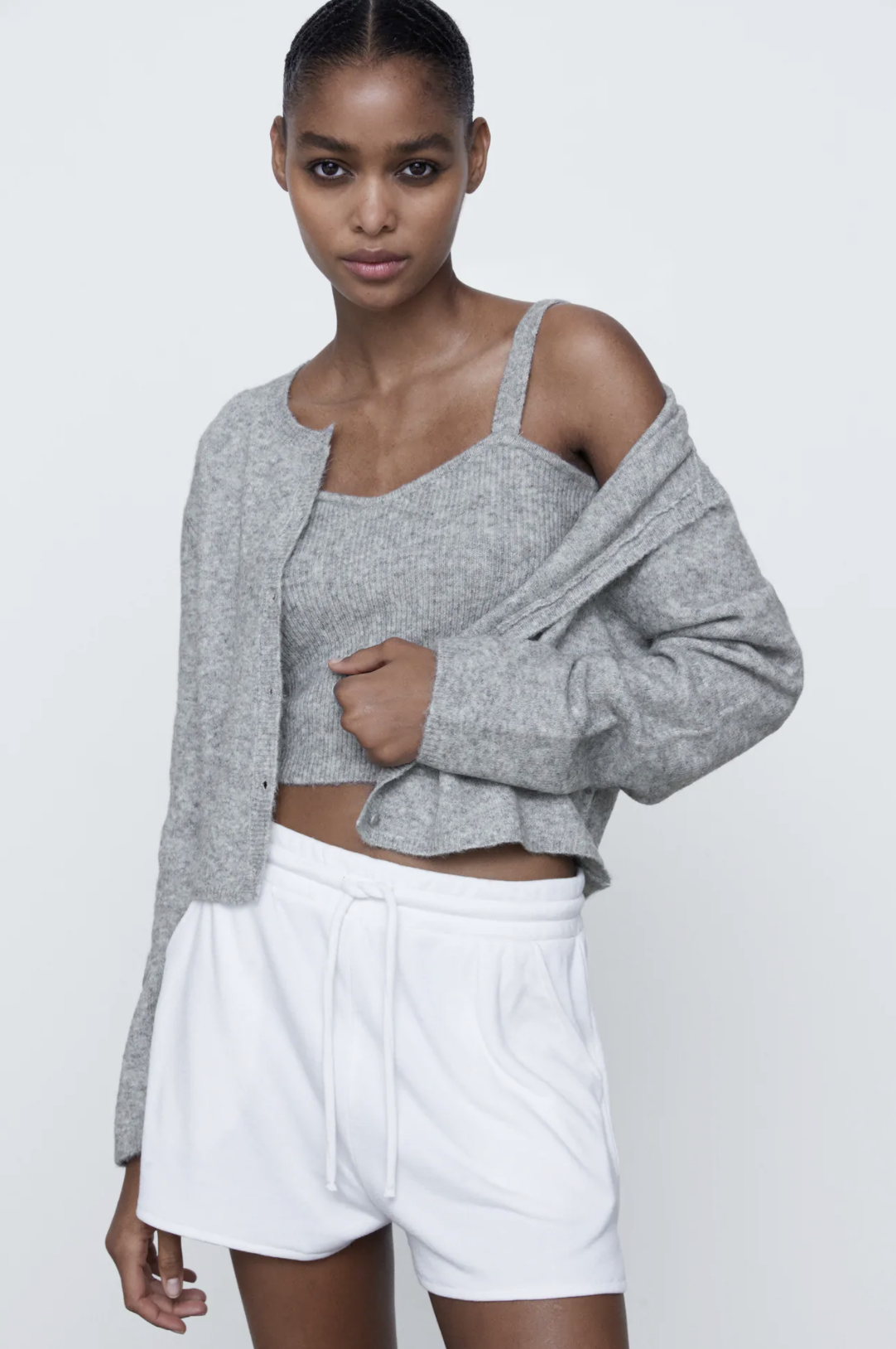 Dù rằng, không phải là combo mới mẻ nữa nhưng set áo gồm crop top và cardigan vẫn cực kì hot. Các thương hiệu thời trang bình dân đến các shop thi nhau ra mẫu mới, chị em cũng rủ rê nhau shopping rần rần. Nghĩ cũng đúng thôi vì set áo này vừa dễ mặc, diện lên trông trẻ trung, xinh xắn phết.