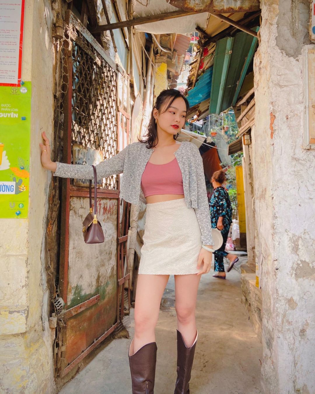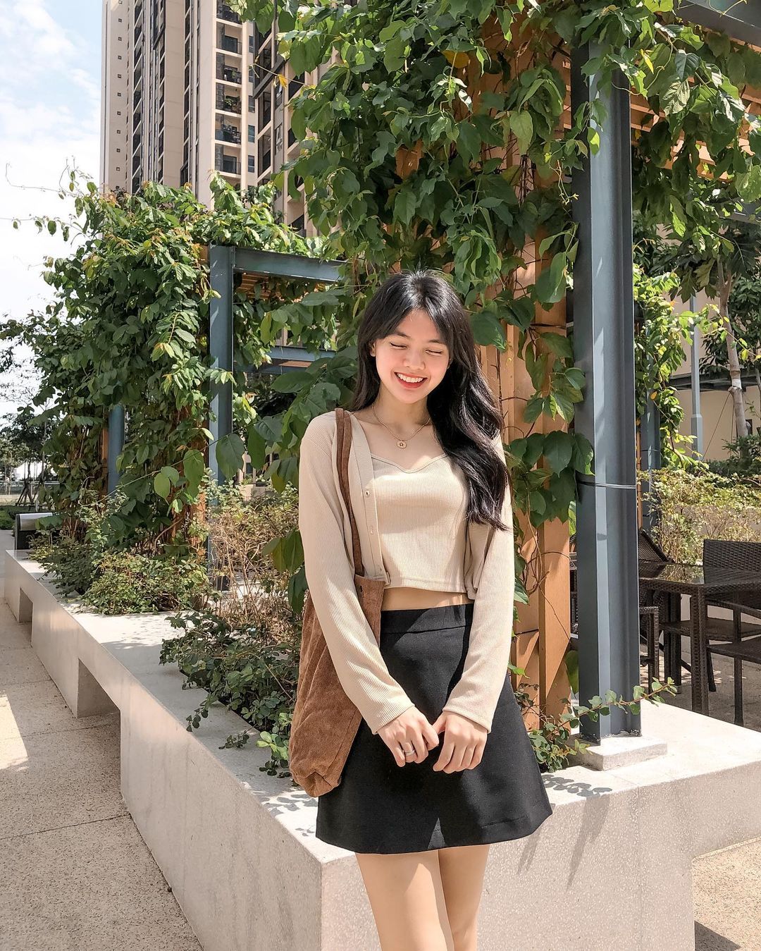 Không nhất thiết phải diện set áo len, vì combo crop top + cardigan chất thun mặc mát này cũng là lựa chọn ổn áp lắm, chọn màu be thì càng dễ phối đồ nha!