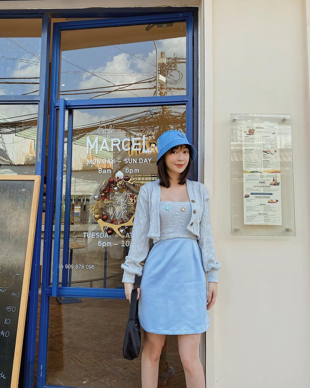 Hoặc bạn có thể chọn phối crop top và cardigan khác màu để trông nổi bật, tươi trẻ hơn. Kết hợp combo này với chân váy ngắn thì xinh xẻo khỏi bàn.