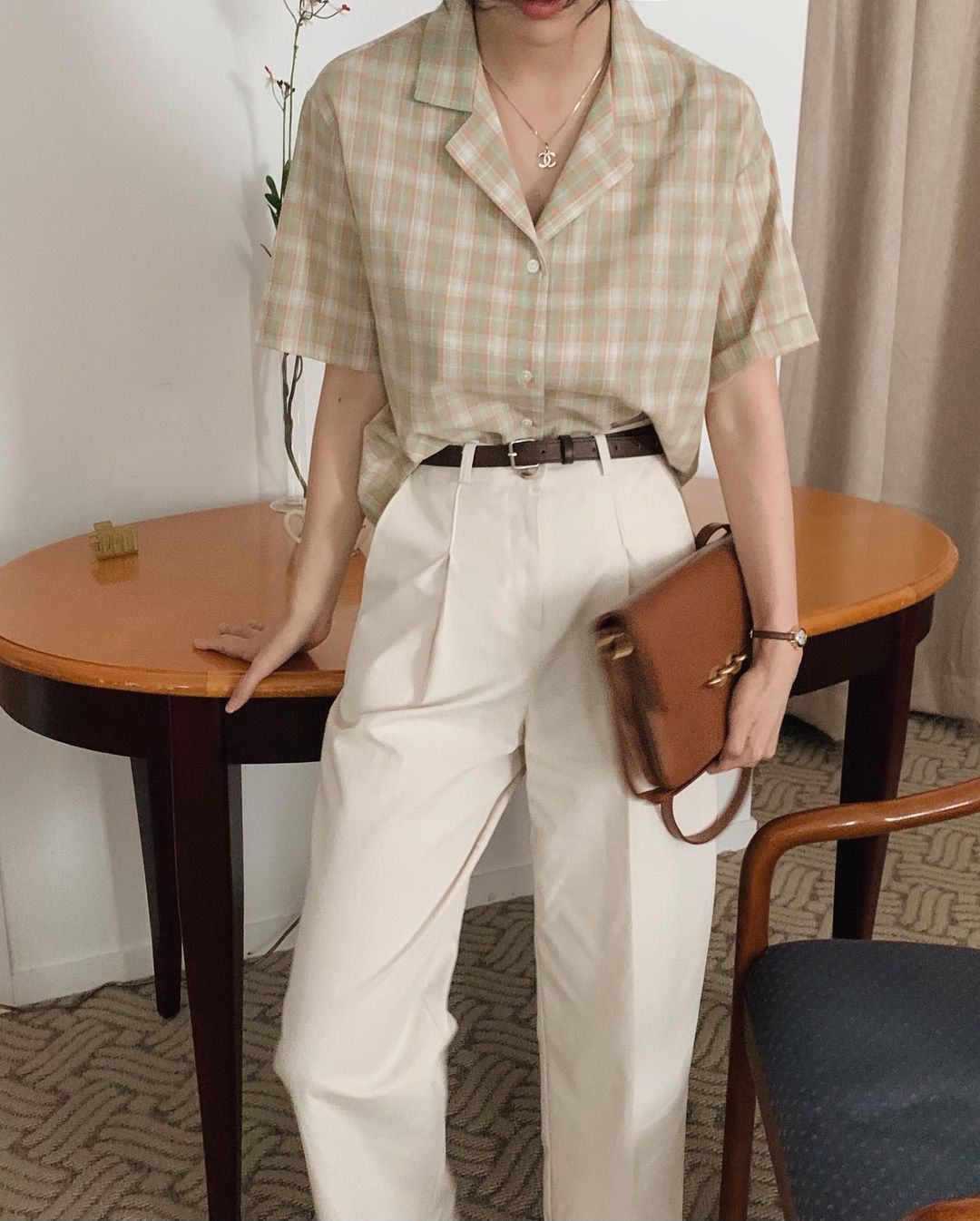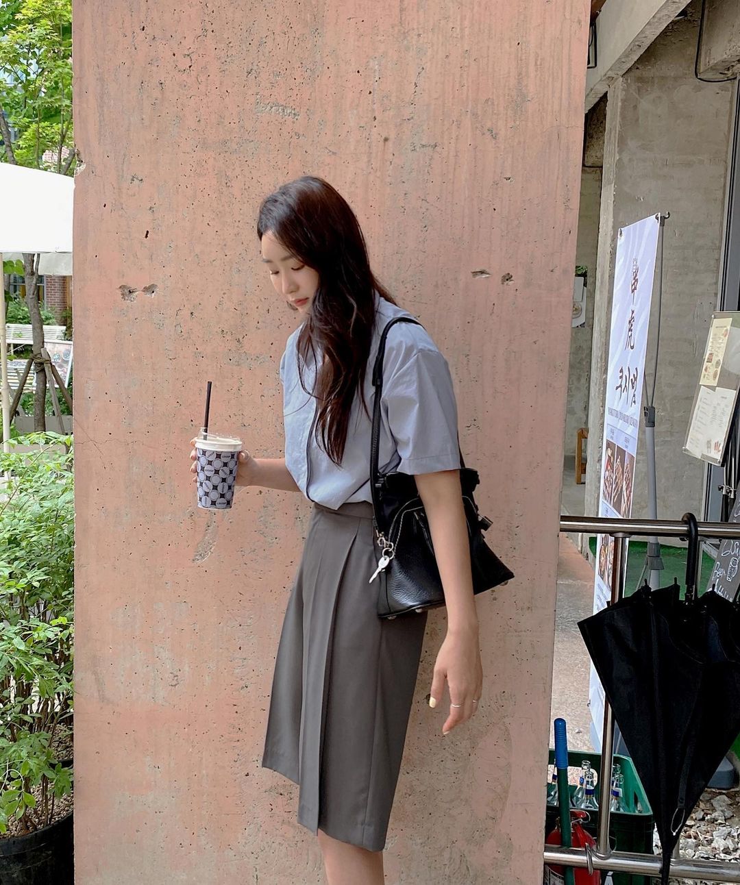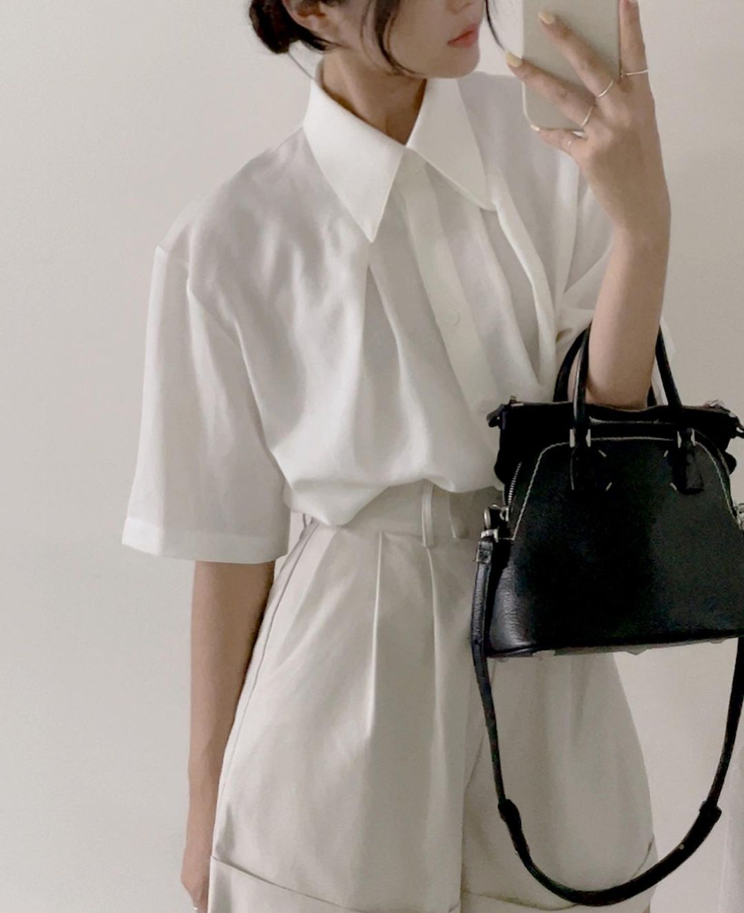 Áo sơ mi cộc tay xuất hiện dày đặc trong những tấm hình OOTD của các quý cô Hàn Quốc. Kiểu áo này mới nhìn qua thôi đã thấy nhẹ mát, nên lý tưởng để diện trong những ngày hè oi bức. Khi diện áo sơ mi cộc tay thì bạn sẽ bỏ qua được công đoạn xắn tay áo vướng víu – thủ tục có thể khiến vẻ ngoài của bạn trở nên luộm thuộm nếu không thao tác cẩn thận. Đây cũng chính là lý do mà khi diện áo sơ mi tay cộc, chị em sẽ "auto" có được vẻ ngoài gọn gàng, chỉn chu mà không phải suy nghĩ quá nhiều.