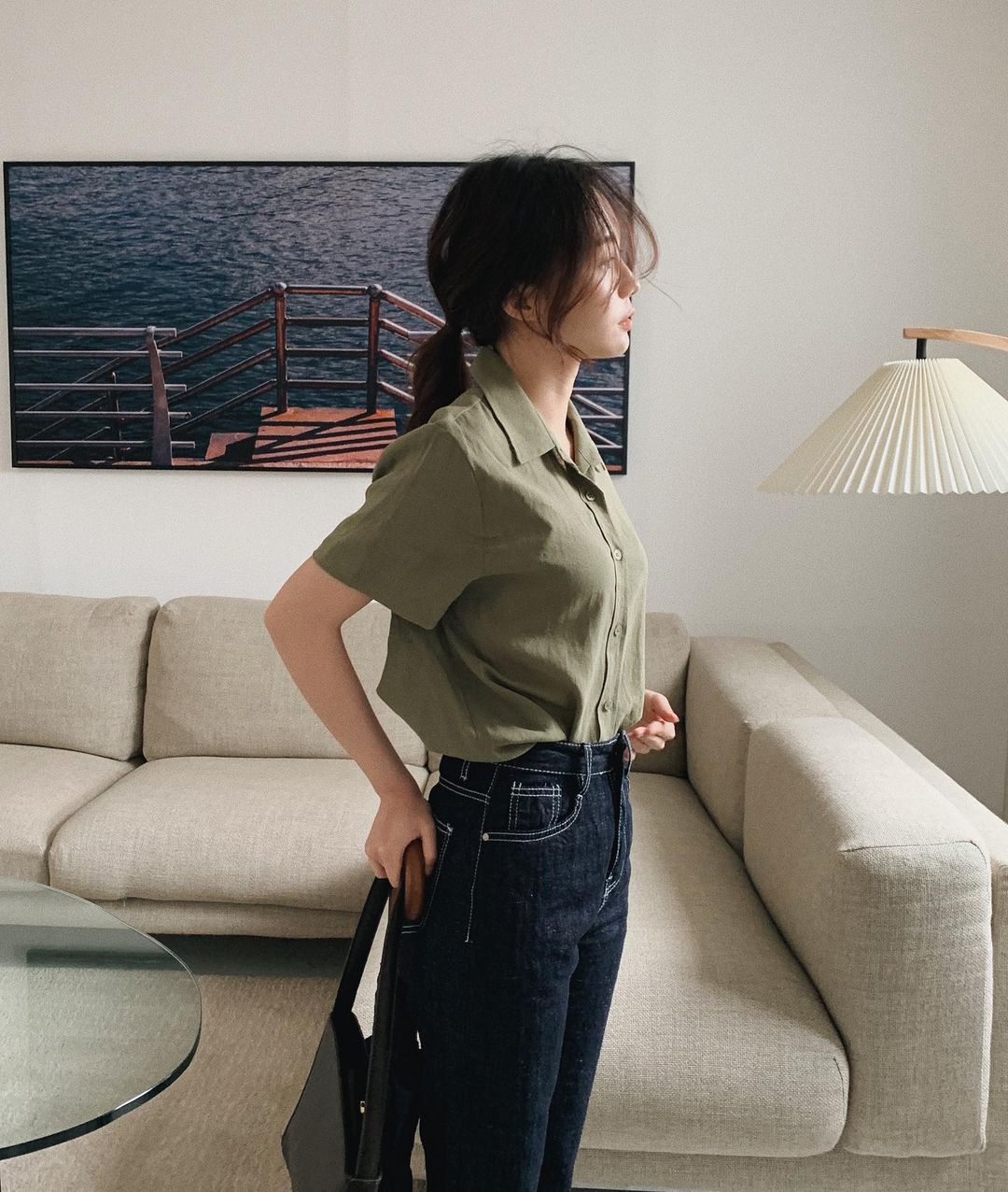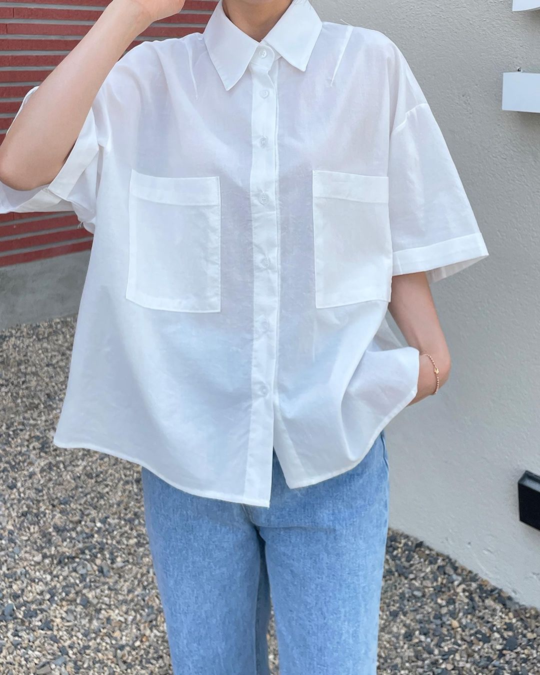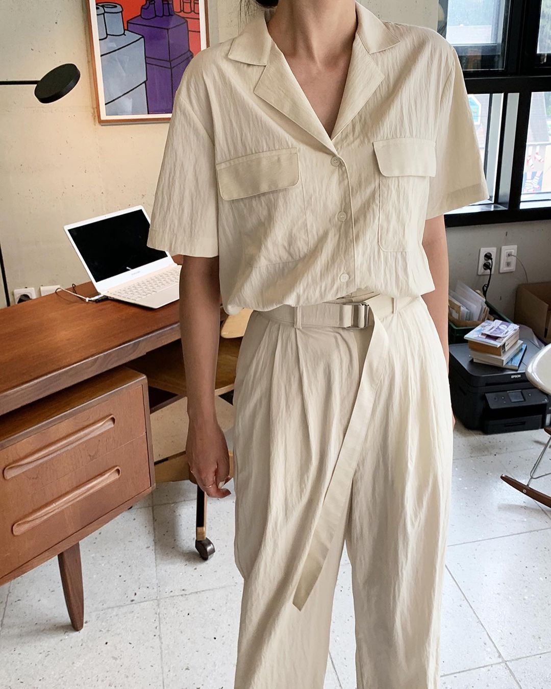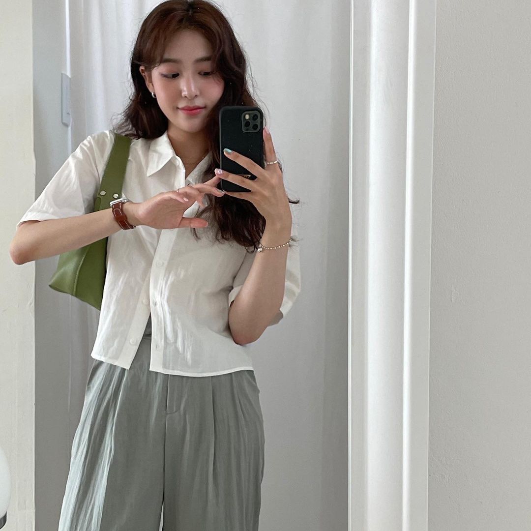 Áo sơ mi cộc tay xuất hiện dày đặc trong những tấm hình OOTD của các quý cô Hàn Quốc. Kiểu áo này mới nhìn qua thôi đã thấy nhẹ mát, nên lý tưởng để diện trong những ngày hè oi bức. Khi diện áo sơ mi cộc tay thì bạn sẽ bỏ qua được công đoạn xắn tay áo vướng víu – thủ tục có thể khiến vẻ ngoài của bạn trở nên luộm thuộm nếu không thao tác cẩn thận. Đây cũng chính là lý do mà khi diện áo sơ mi tay cộc, chị em sẽ "auto" có được vẻ ngoài gọn gàng, chỉn chu mà không phải suy nghĩ quá nhiều.