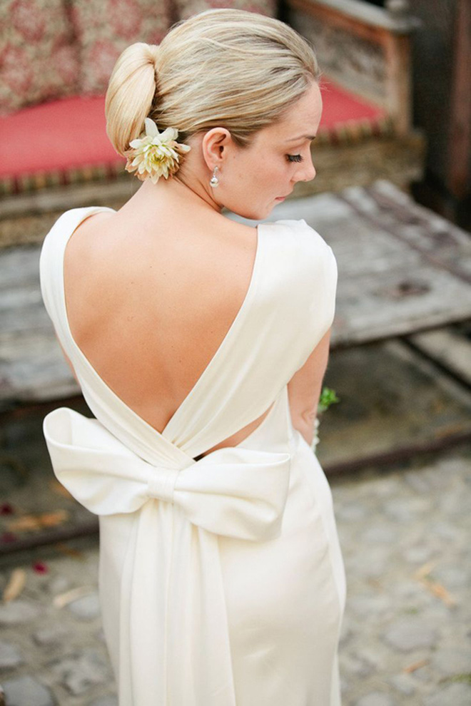 Chính vì vậy, việc cần làm là chọn mẫu váy có độ dài vừa phải, vừa chạm tới mắt cá chân hoặc cùng lắm là dài chấm đất. Ưu tiên kiểu váy tay ngắn, không có tay hoặc váy 2 dây. Ham hố mà chọn váy cưới dài tay chỉ khiến nàng tự cộng cho mình vài tuổi nữa mà thôi!