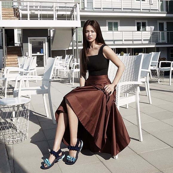Mới đây, Song Hye Kyo tiếp tục tung ra loạt ảnh mới khoe nhan sắc trẻ trung, rạng ngời. Tuy nhiên, nhiều tín đồ thời trang lại đặc biệt chú ý đến đôi sandals mà nữ diễn viên lăng xê trong bộ ảnh.