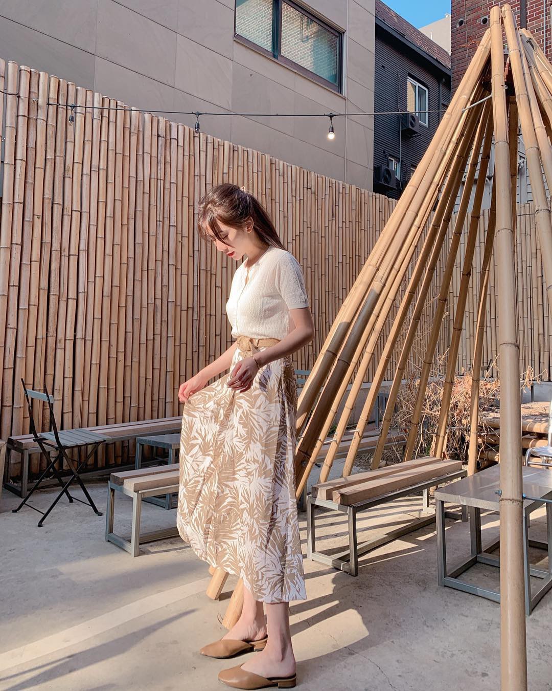 Diện giày mule, phần gót chân của bạn sẽ được hé lộ hoàn toàn và đây cũng chính là lý do, vóc dáng trông cao ráo, thanh thoát hơn so với khi bạn diện giày búp bê. Nếu bạn muốn hiệu quả "hack" dáng được phát huy triệt để nhất, hãy mix giày mule với những mẫu quần hay váy liền/chân váy có độ dài tối đa đến mắt cá chân, sau đó sơ vin gọn gàng là quá ổn.