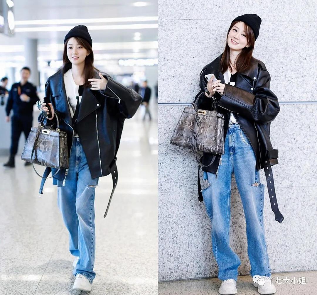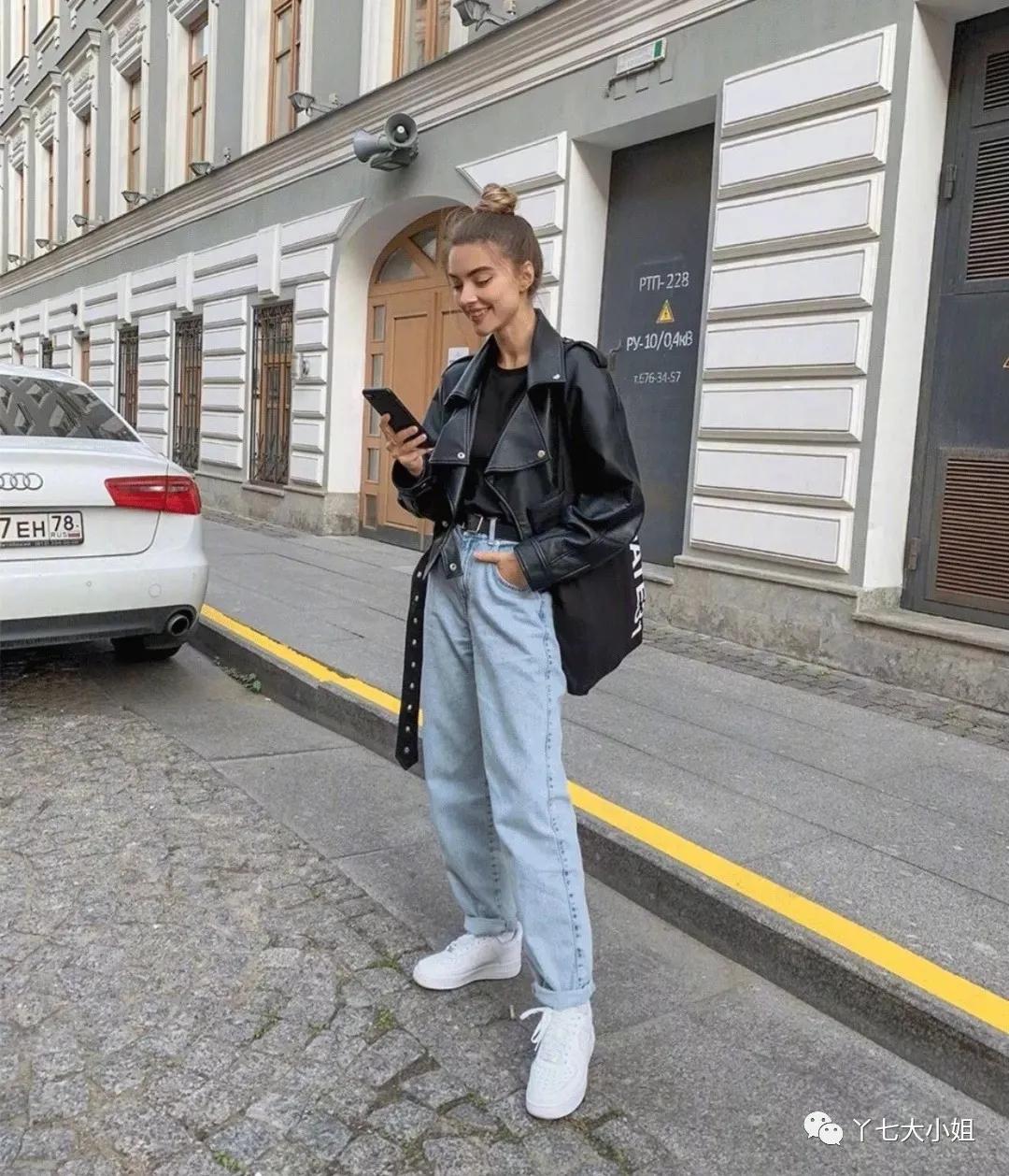 So với áo khoác denim, áo khoác da có phần cứng và mạnh mẽ hơn. Đồng thời, bởi vì quần áo da chủ yếu là màu đen, nên tạo cảm giác trưởng thành và bí ẩn hơn so với sự trẻ trung của màu xanh denim, càng làm tăng thêm khí chất lạnh lùng và điển trai. Toàn bộ outfit thiên về màu đen tạo cảm giác mạnh mẽ nhất về sự phóng túng và lạnh lùng.
