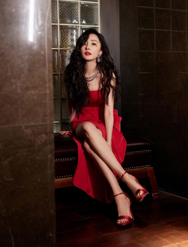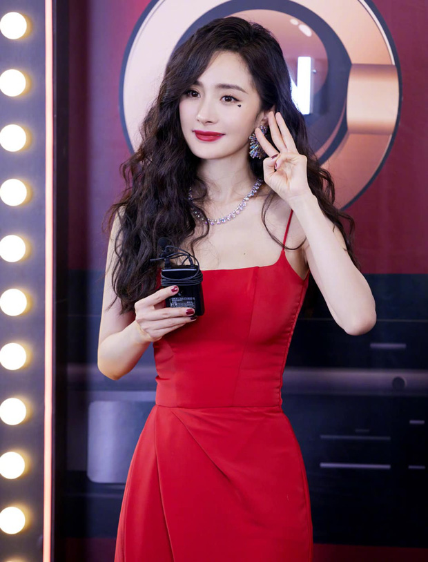 Dương Mịch cũng khéo chọn màu son đỏ tôn da để có visual ấn tượng, sang chảnh hết nấc. Bên cạnh đó, cô còn kết hợp lối makeup sắc sảo, kiêu sa, điểm xuyết trái tim đen ở gần đuôi mắt và chọn style tóc uốn xoăn bồng bềnh.