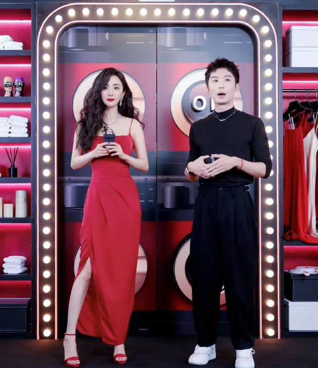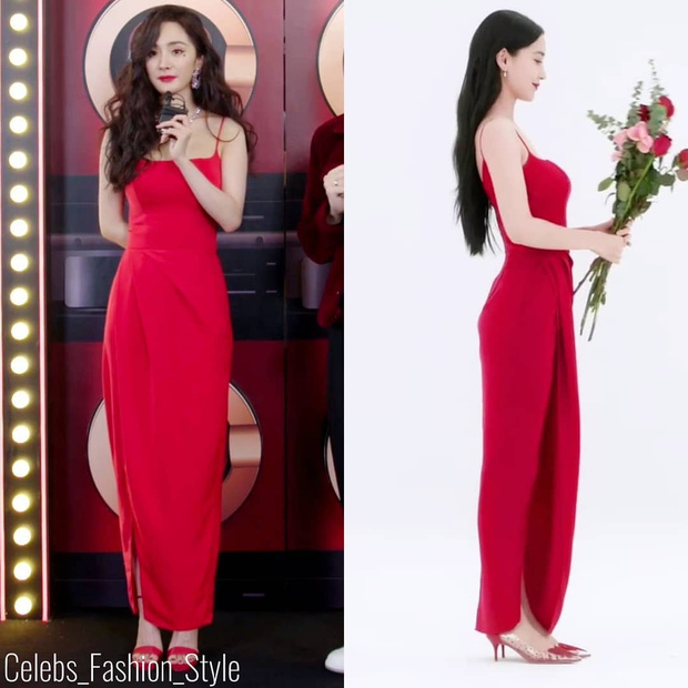 Trùng hợp là kiểu váy này cũng lọt vào mắt xanh của Angela Baby. Bà xã Huỳnh Hiểu Minh cũng tinh ý diện son đỏ quý phái để gương mặt cuốn hút hơn.