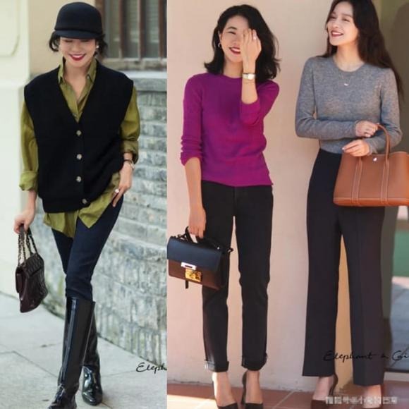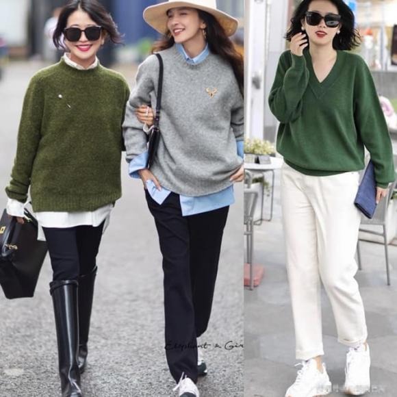 Quần kaki đặc biệt phù hợp với những mùa thu đông đỏng đảnh, không kén dáng hay xuề xòa, điều quan trọng nhất là gam màu này đặc biệt giảm tuổi tác, phối cùng áo cardigan dệt kim cùng màu tạo cảm giác cao cấp.