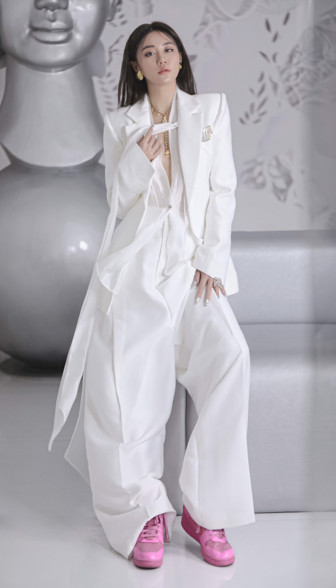 Hậu giảm cân, nữ ca sĩ trở nên mảnh mai hơn bội phần. Gu thời trang của cô thời gian gần đây cũng lộ những tín hiệu khởi sắc thấy rõ. Ngay cả trong bộ hình diện full cây trắng, một màu nổi danh "gây béo", Văn Mai Hương vẫn cứ là nuột nà!