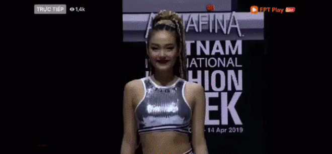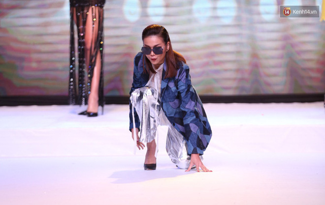 Minh Hằng thì lại có pha nhào lộn "để đời" trên sân khấu và khi đứng dậy, người đẹp loạng choạng không ít làm khán giả giật mình theo. Lý do được đưa ra là sàn diễn quá trơn khiến pha trình diễn không được như mong muốn.