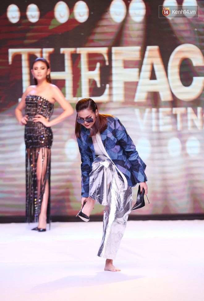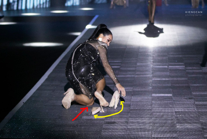 "Chị đại" Thanh Hằng cũng từng có sự cố vấp ngã trên sân khấu khiến người hâm mộ "hú vía" khi xem. Đôi giày cao gót rơi ra khỏi chân khiến cô có cú "vồ ếch" bất ngờ. Tuy nhiên với bản lĩnh và kinh nghiệm của mình, Thanh Hằng nhanh chóng tháo nốt chiếc giày còn lại và giữ thần thái catwalk tự tin.