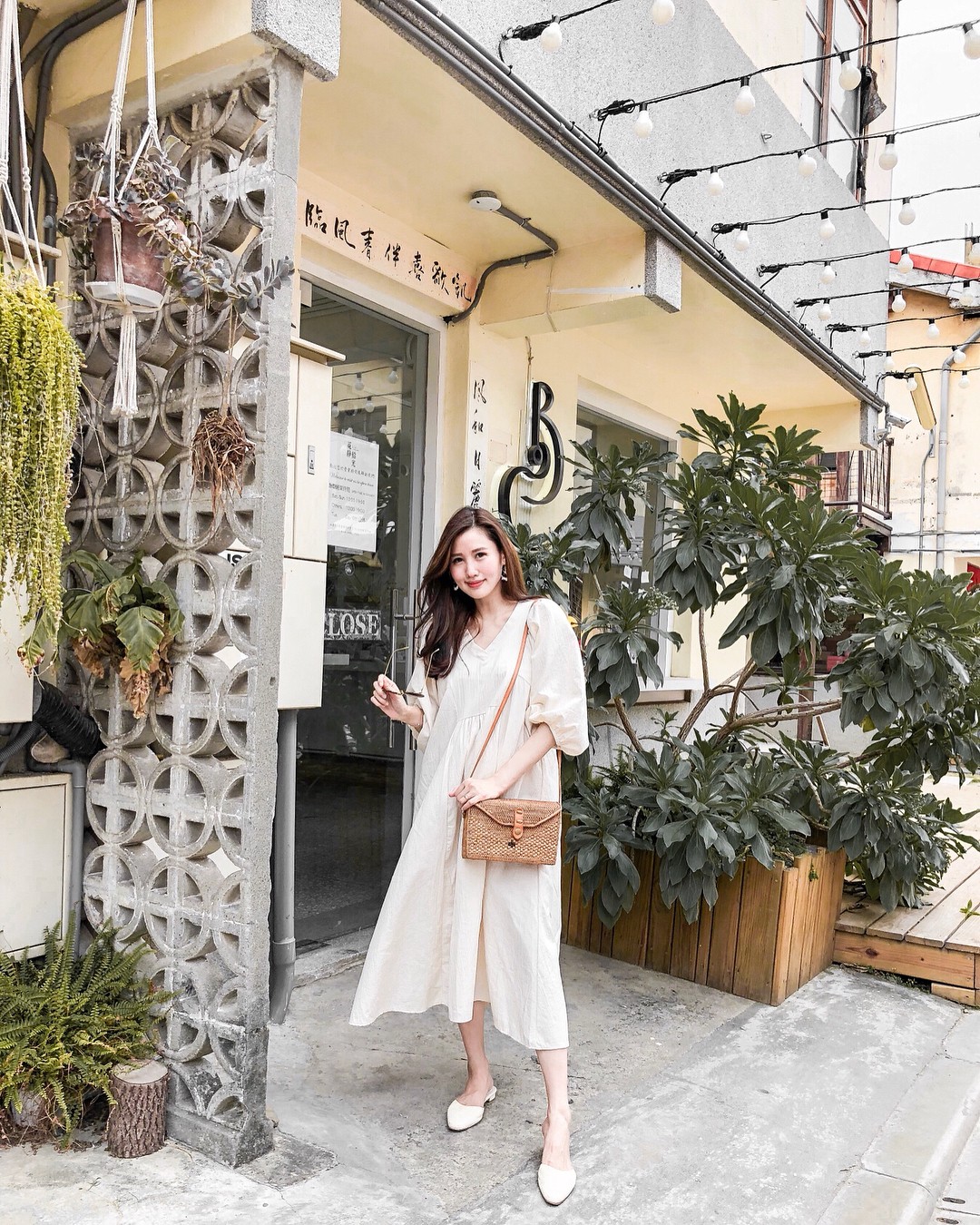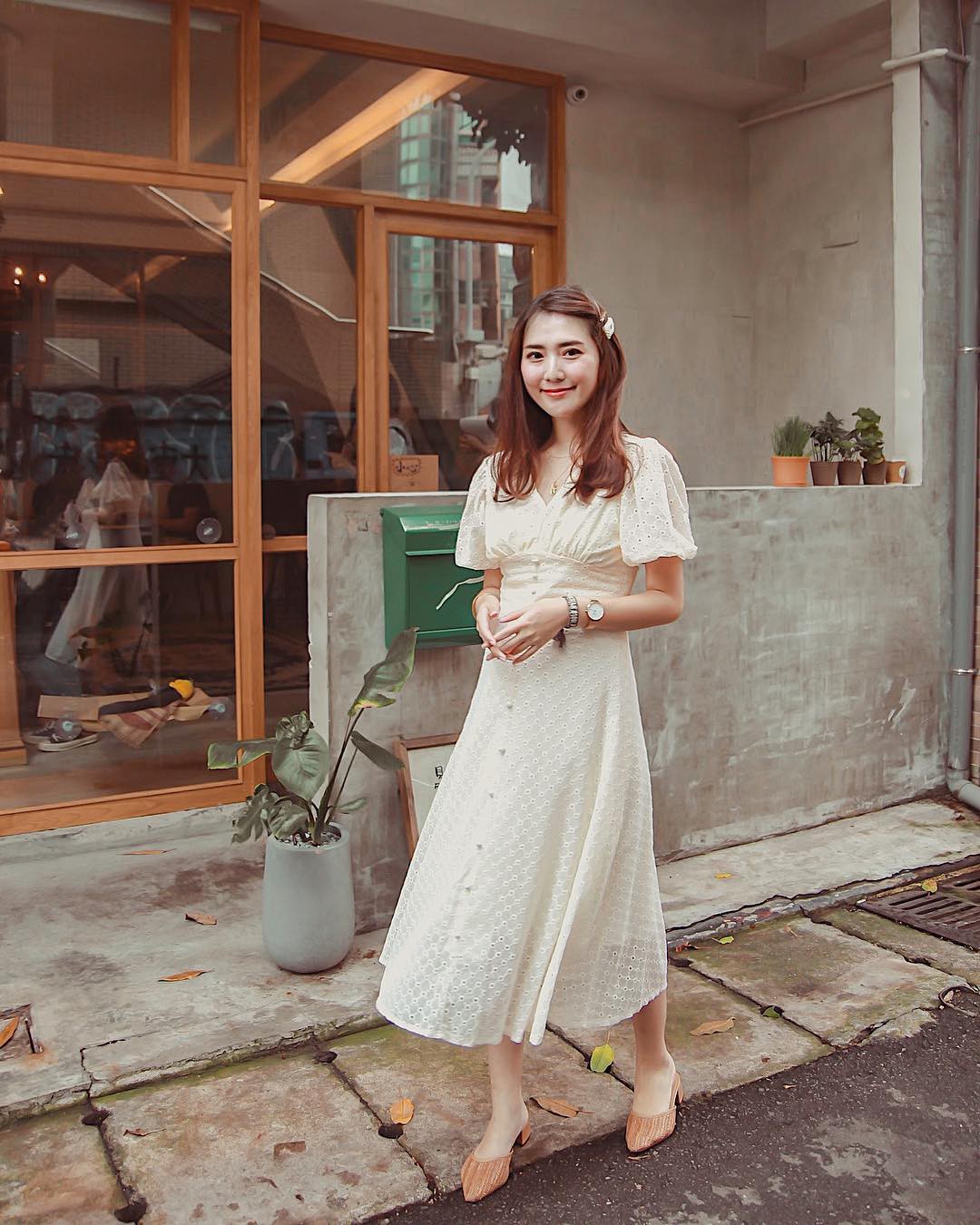 3. Váy liền + giày mule/sandals