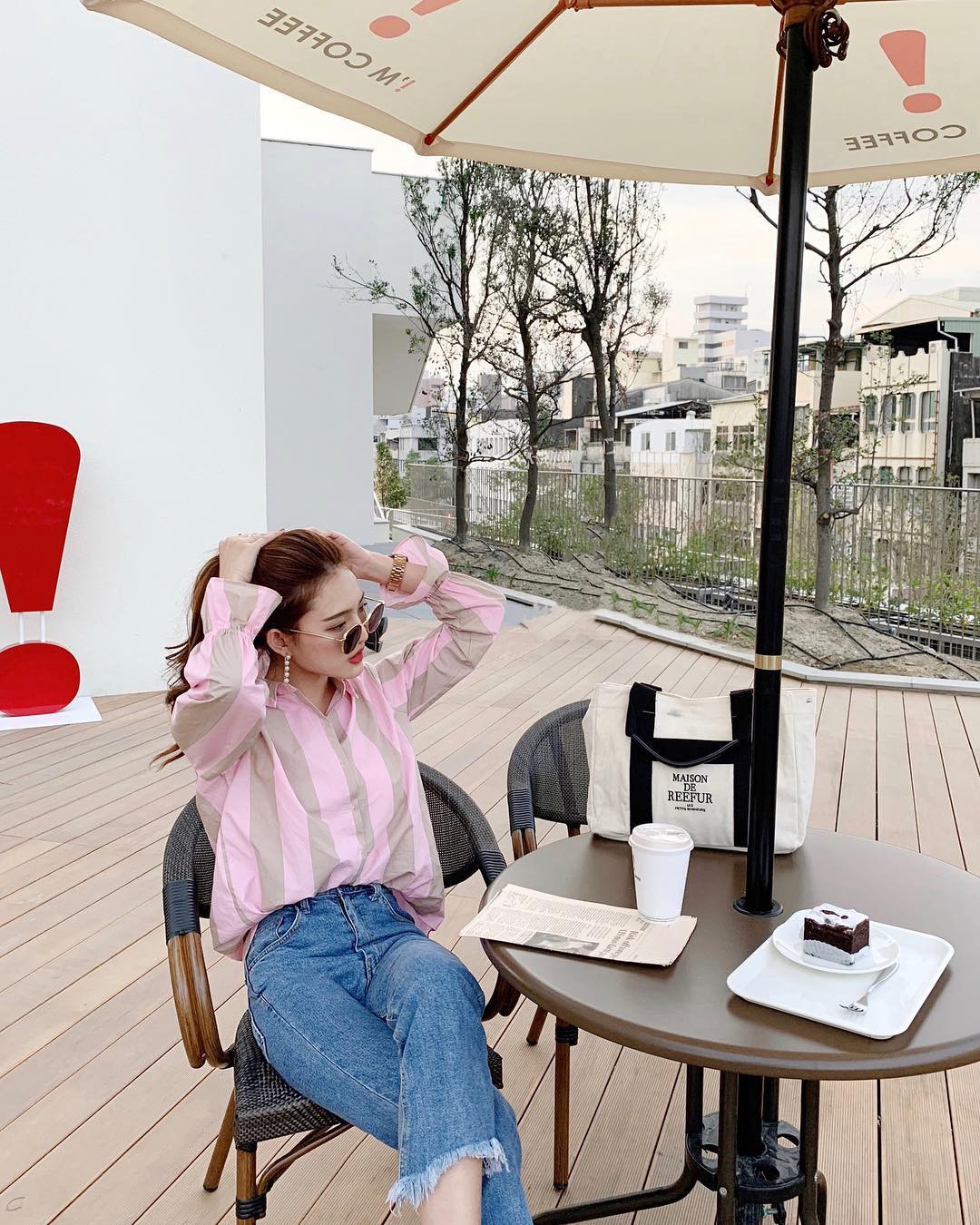 1. Áo sơ mi oversized + quần jeans
