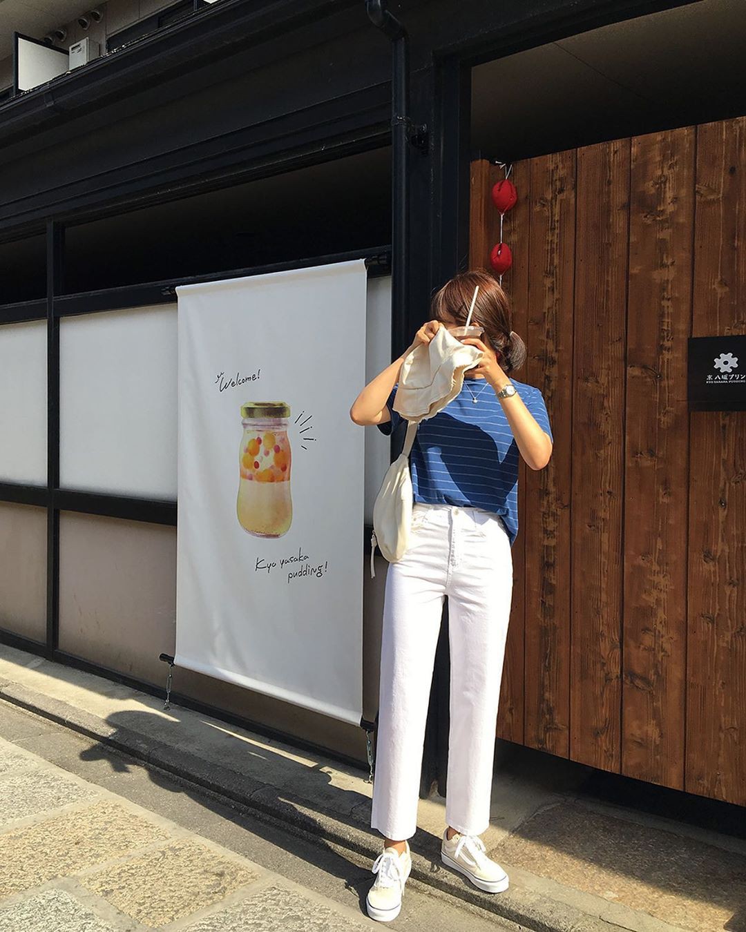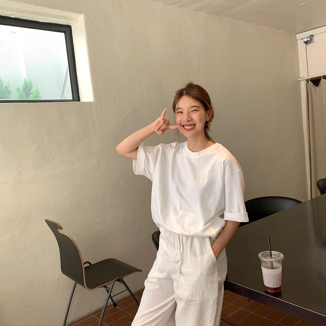 2. Áo t-shirt + quần trắng