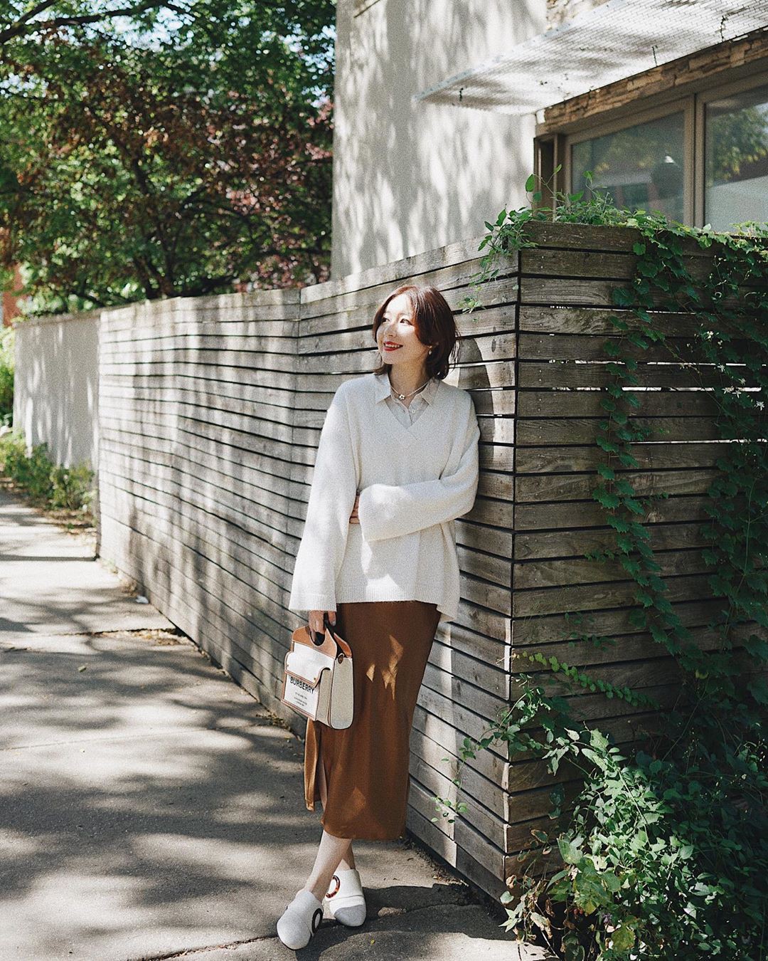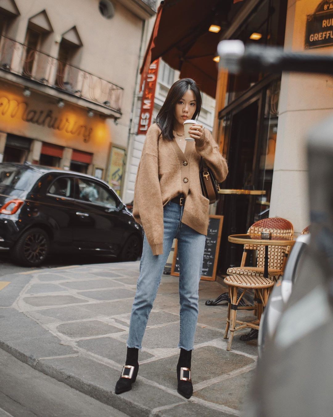 "Hiện tại, tuyệt chiêu lên đồ mà tôi yêu thích chính là diện những chiếc áo len theo cách thật sáng tạo. Chẳng hạn, tôi đã biến tấu chiếc áo cardigan của mình bằng cách chỉ cài một nửa số cúc áo rồi mix với quần jeans, kết quả tôi nhận được rất thú vị và mới mẻ", nữ biên tập viên cho hay.