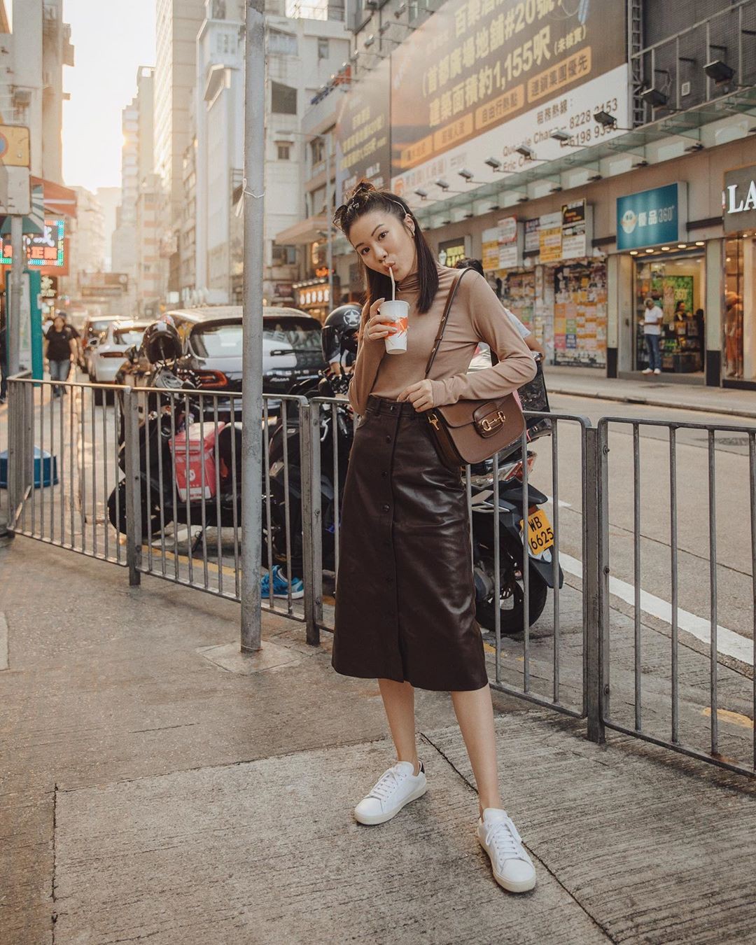 "Tôi thực sự đã hòa mình vào xu hướng đồ da của mùa thu năm nay, đặc biệt là những items có phom dáng oversized. Chúng mang đến vẻ ngoài đượm chất Thu khi kết hợp với những items mà tôi yêu thích như: chân váy lụa, áo khoác denim hay đơn giản là một chiếc áo thun hay áo len". Những món đồ da không chỉ hợp với không khí mùa lạnh, chúng còn mang đến vẻ sang chảnh, chất chơi cho bạn. Bên cạnh những đôi boots da thì áo khoác da, chân váy da cũng rất đáng sắm.