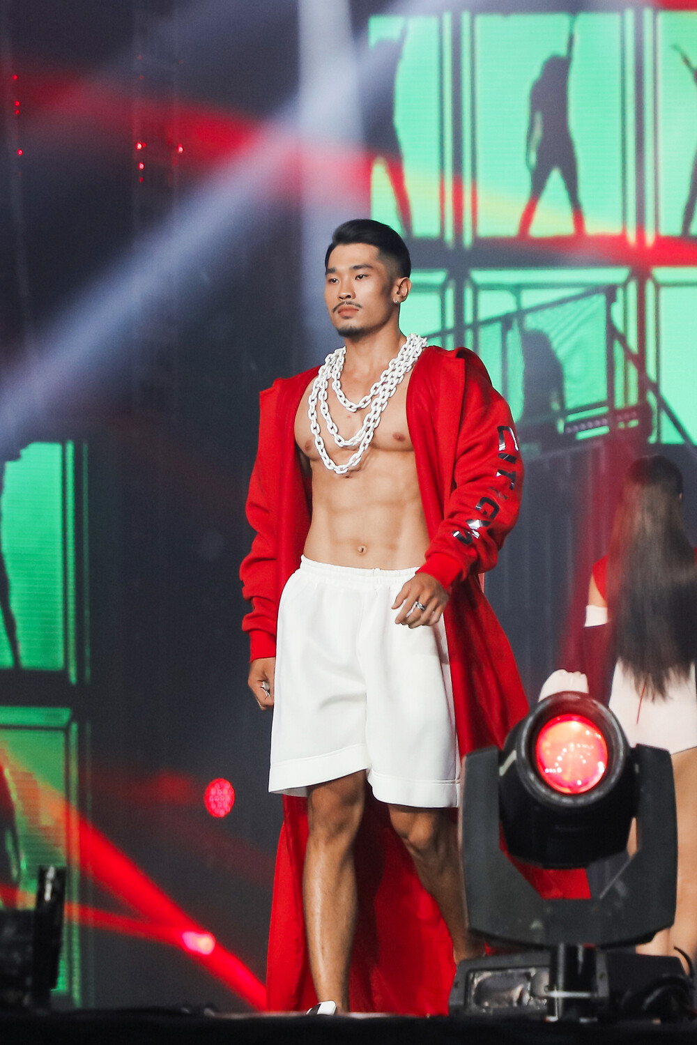 Á hậu Kiều Loan xuất hiện mở màn cho BST, cô khoác lên mình trang phục bốc lửa, đề cao vẻ đẹp hình thể của phụ nữ thời hiện đại. Sự xuất hiện của Á hậu Kiều Loan đã khiến khán phòng vô cùng phấn khích vì cô vốn là một thí sinh nổi bật của King Of Rap.