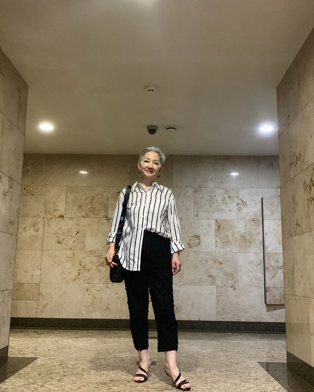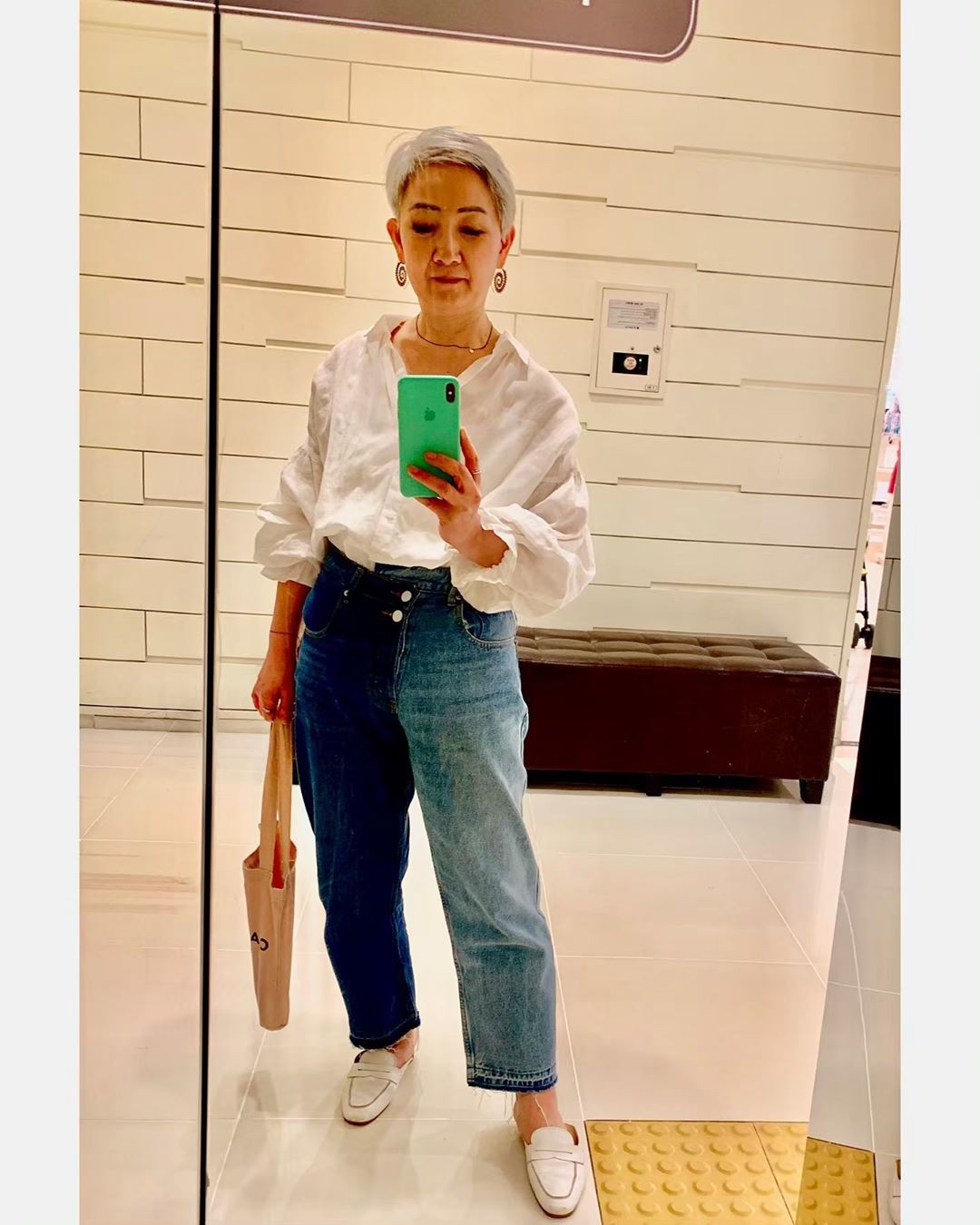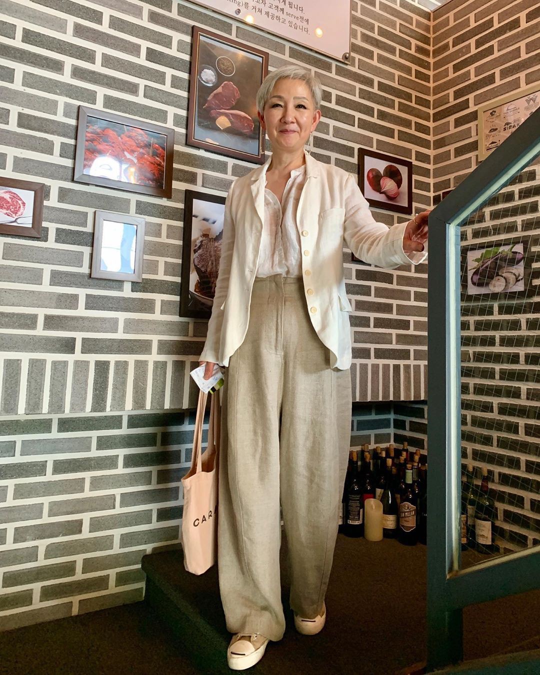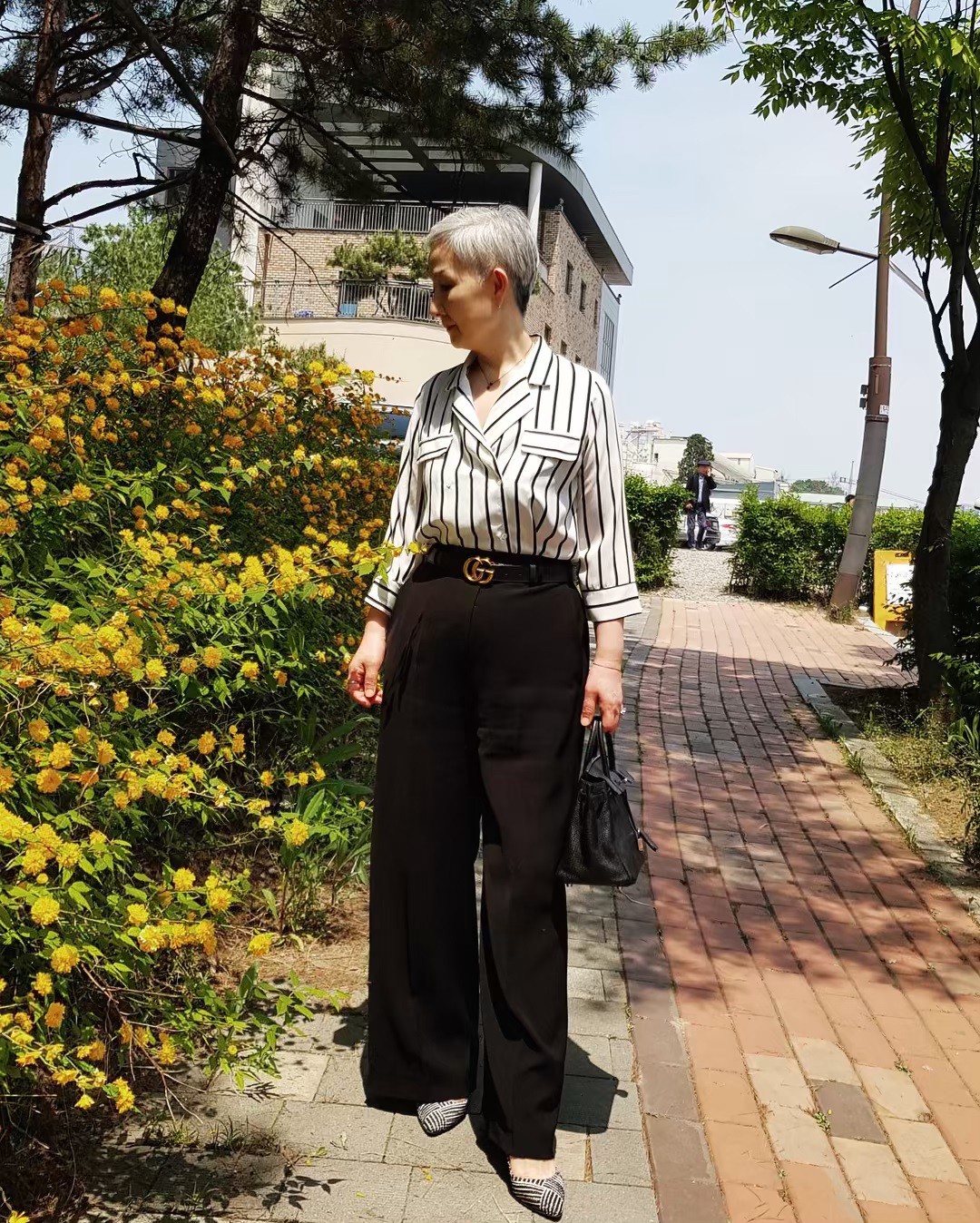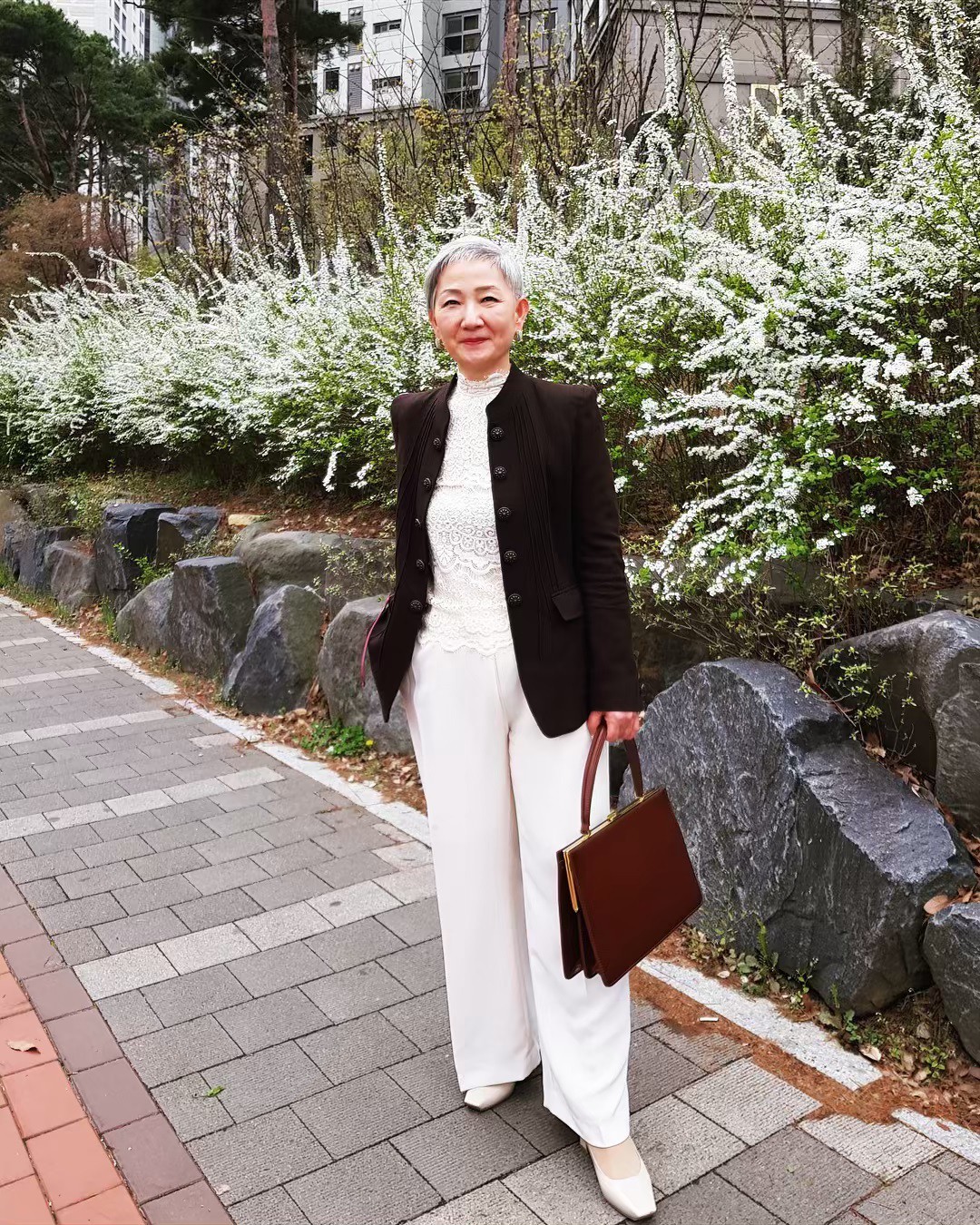 Ở cái tuổi đầu 2 thứ tóc, ít ai nghĩ được bà Hyun Joo đến từ Hàn Quốc này lại sở hữu phong cách thời trang trẻ trung đến vậy. Khác với những người ở cùng độ tuổi sẽ chỉ diện những món đồ rộng màu tối thì bà Joo lại rất chăm chỉ update tủ đồ của mình bằng loạt những items hot-trend. Áo sơ mi, quần jeans hay thậm chí là những chiếc váy màu bè vẫn được bà Joo diện đẹp mà chẳng hề sến hay làm lố tẹo nào.