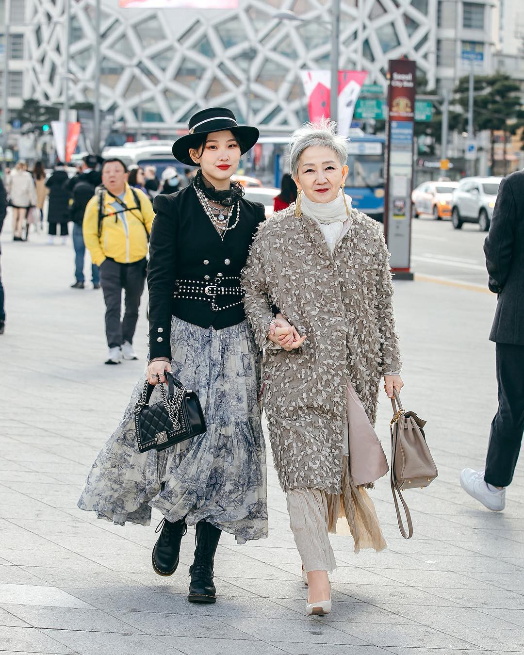 Ở độ tuổi U70, chắc hẳn ít ai được như bà Hyun Joo, vẫn trang điểm và "lên đồ" cực chất chẳng thua kém gì giới trẻ hay cô con gái của mình. Có thể thấy bà Joo rất đa dạng về style, khi thanh lịch chuẩn công sở, khi lại điệu đà, thậm chí đôi lúc cũng đầy cá tính.