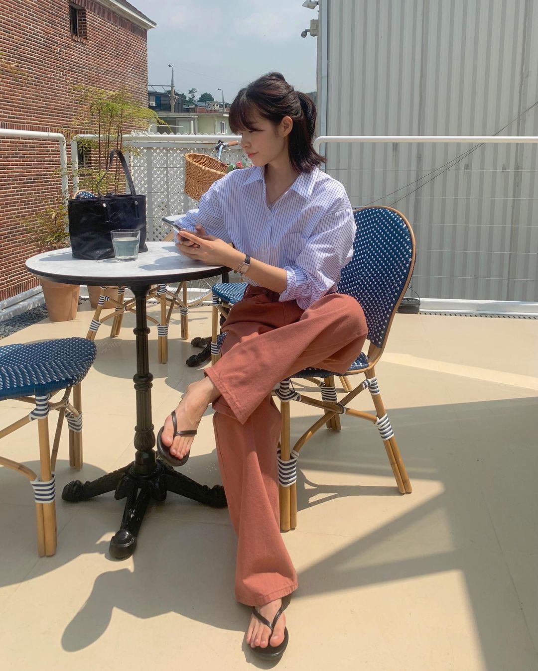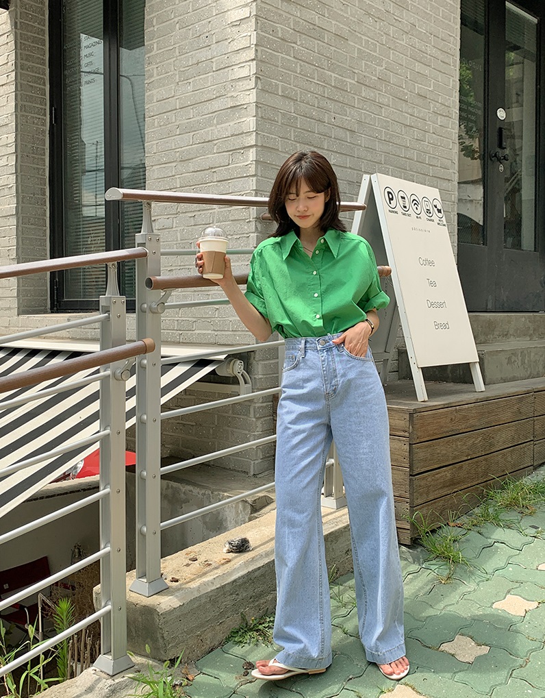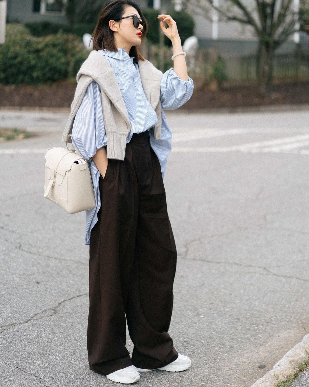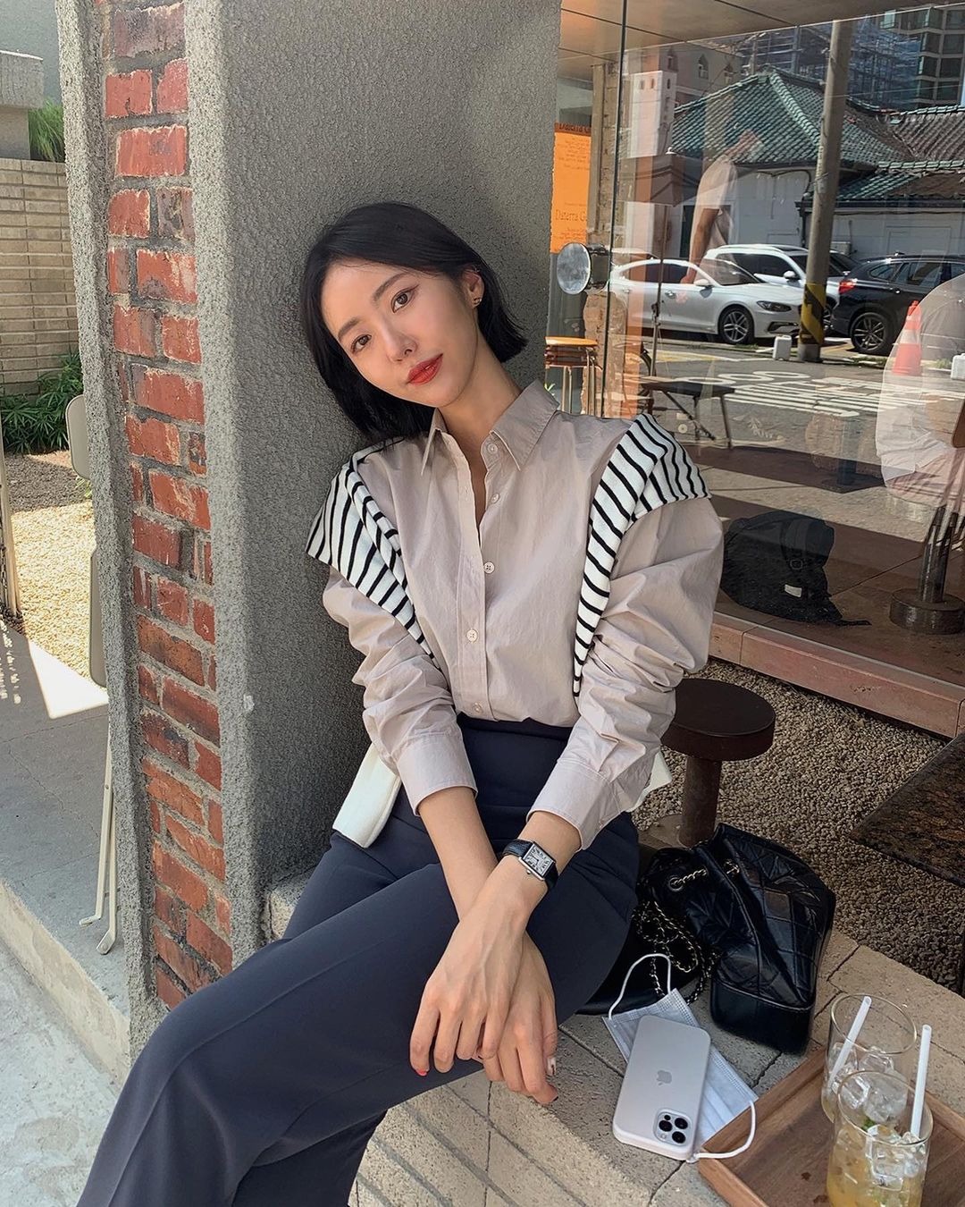 Sự kết hợp giữa áo sơ mi và quần ống rộng luôn toát lên vẻ phóng khoáng và cool ngầu, nên cũng thật hợp với nét cá tính của kiểu tóc ngắn. Combo này còn đảm bảo cho chị em vẻ ngoài thanh lịch, nhưng vẫn rất trẻ trung chứ không bị nhàm chán. Nếu muốn cải thiện chiều cao, chị em nên sơ vin khi diện áo sơ mi + quần ống rộng. Bằng không, bỏ áo ngoài quần cũng là một ý tưởng hay vì giúp tăng thêm vẻ chất chơi cho tổng thể trang phục.