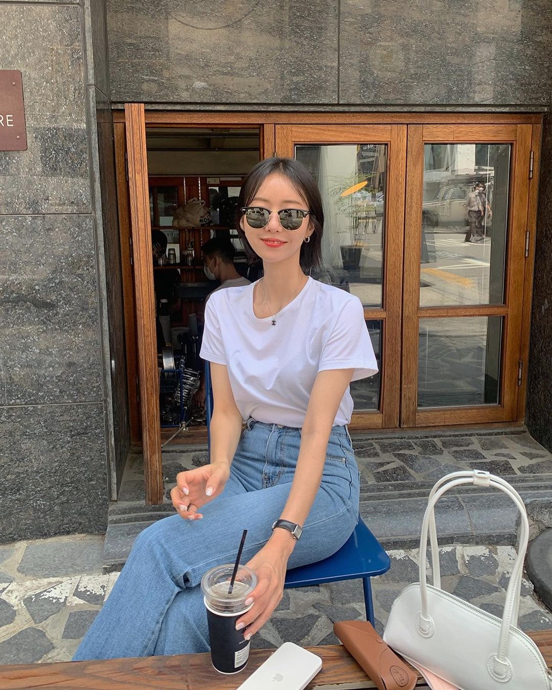Áo thun trắng + quần jeans là cặp bài trùng hoàn hảo và rất hợp với hội chị em tóc ngắn. Combo này có khả năng hack tuổi hiệu nghiệm nhưng sẽ không bị "cưa sừng làm nghé" nếu bạn chọn lựa và mix đồ khéo một chút. Cụ thể, thay vì sắm những mẫu áo thun trắng họa tiết lòe loẹt, chị em nên ưu tiên kiểu áo trơn màu, khi diện thì "đóng thùng" gọn gàng, vẻ ngoài lúc này sẽ trẻ trung mà vẫn ghi điểm thanh lịch, xịn mịn. Cuối cùng, nếu muốn vẻ ngoài trông ấn tượng hơn, bạn có thể đeo kính mắt, hoặc tô son môi đỏ cũng là ý tưởng rất hay.