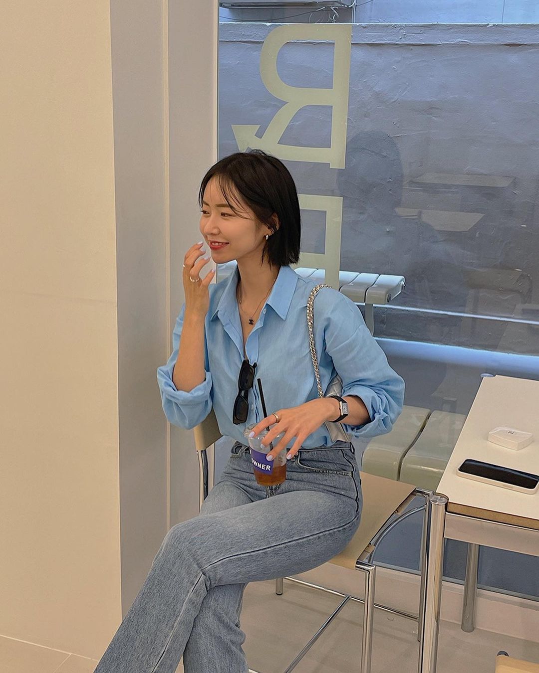 Đây là combo siêu dễ tính, nàng tóc ngắn nào cũng có thể diện đẹp và ghi điểm sành điệu. Một số nàng tóc ngắn còn tạo điểm nhấn cho combo kinh điển này bằng cách nhấn nhá thêm đôi khuyên tai, hay vòng cổ đơn giản để set đồ thêm xịn mịn, nhưng vẫn tinh tế. Thêm một tuyệt chiêu rất hay mà nàng tóc ngắn nên ghim, đó là hãy sơ vin khi diện combo áo sơ mi + quần jeans, thao tác này không chỉ tôn dáng tốt mà còn đảm bảo vẻ ngoài thời thượng cho người mặc.