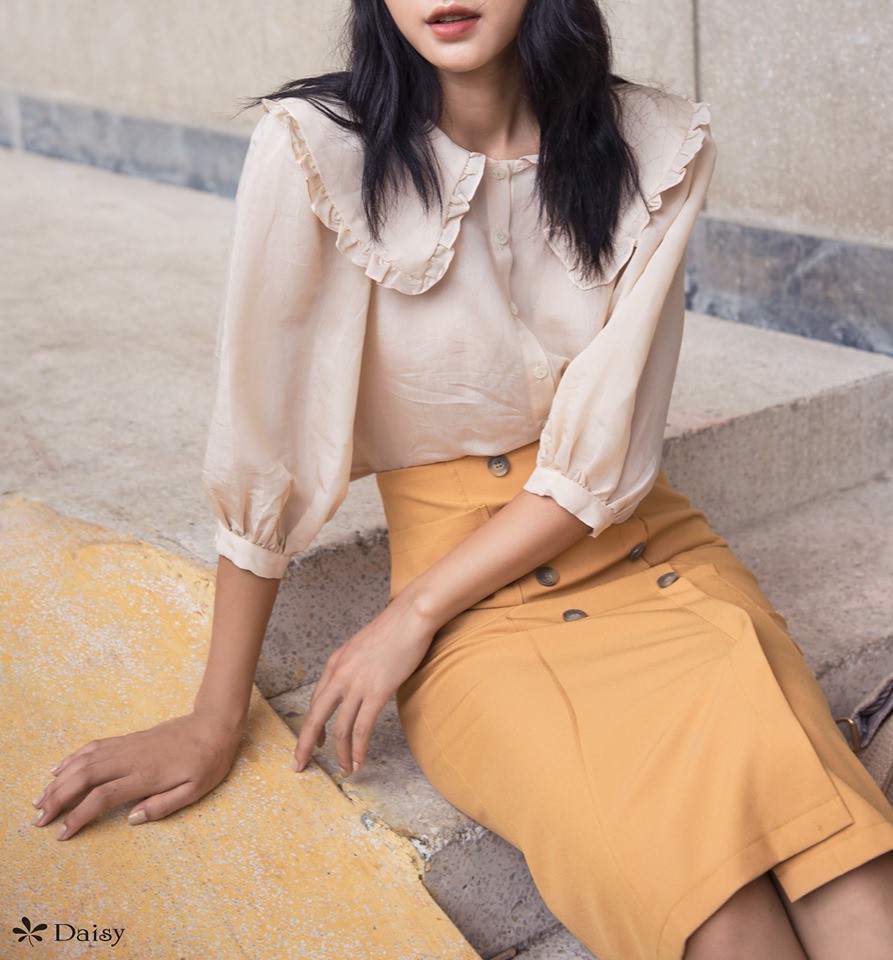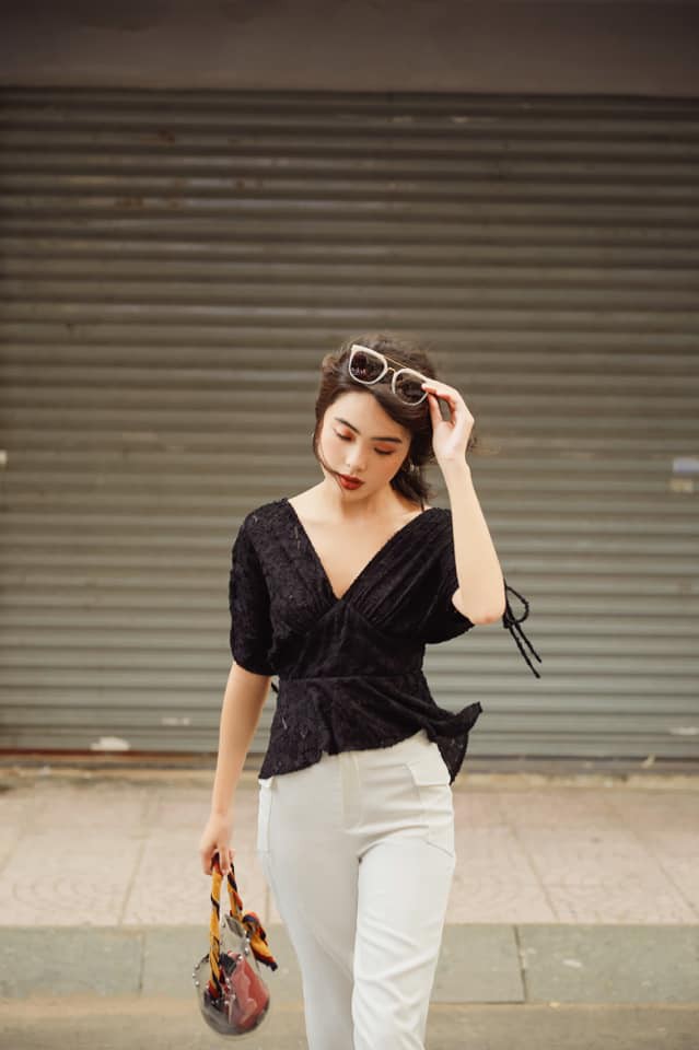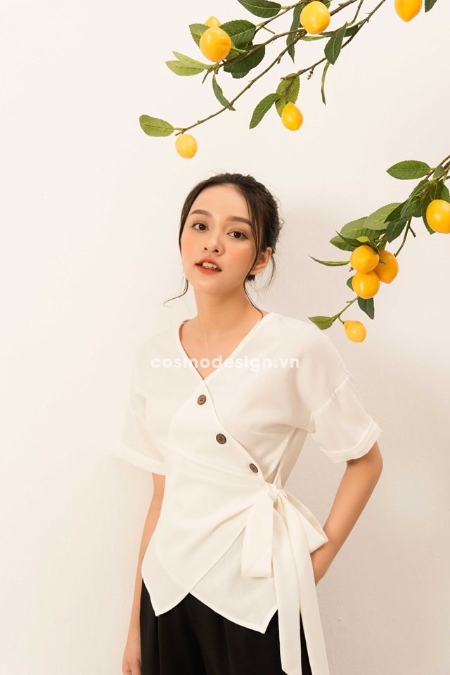 * Thiết kế áo blouse cổ V sâu/ thêm thắt cách điệu ở ngực hay tay áo