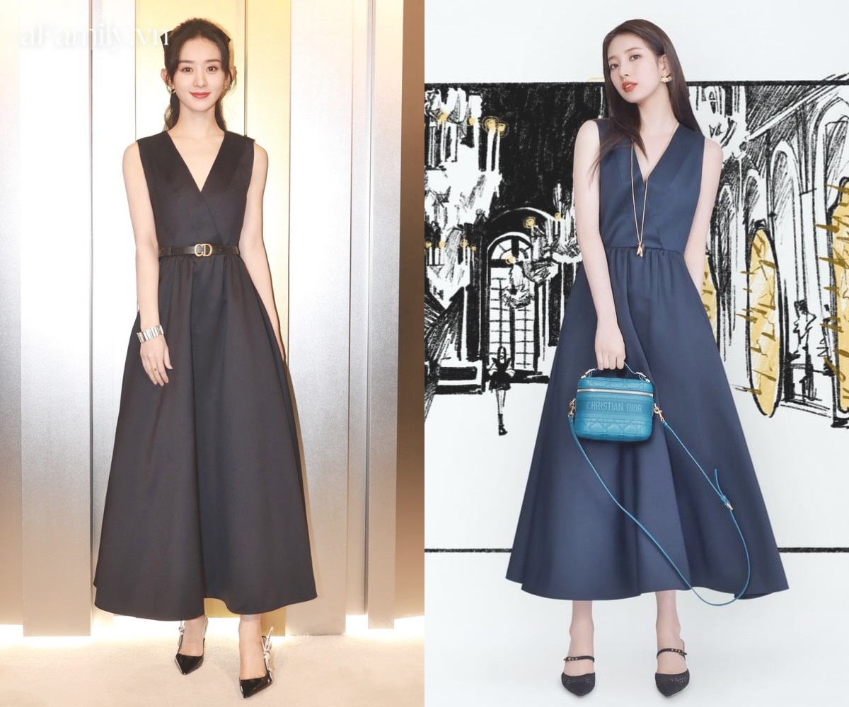 Trong quá khứ, 2 mỹ nhân này cũng từng có nhiều pha đụng độ đáng chú ý trong những thiết kế của Dior. Có khi Triệu Lệ Dĩnh lấn át nhờ khéo dùng thắt lưng giúp tạo hiệu ứng tôn dáng tốt hơn so với Suzy.