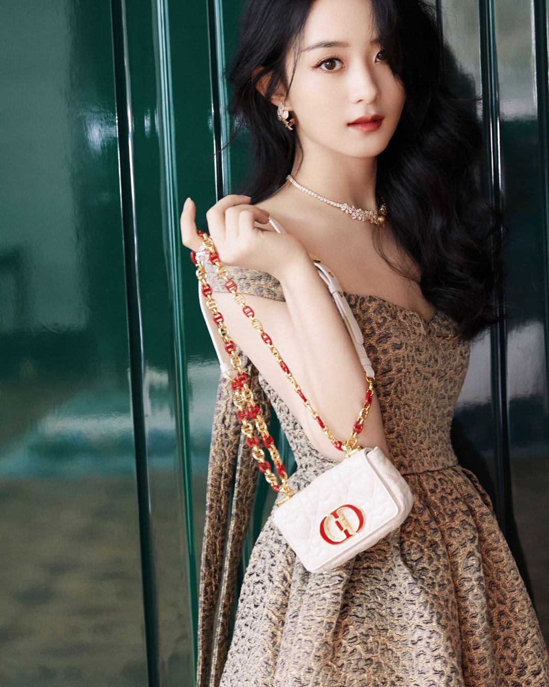 Xuất hiện rạng rỡ và cực kỳ tươi tắn trong chiếc váy trễ vai Dior, khoe khéo đôi vai trần nuột nà cùng vùng cổ ngọc ngà, trắng muốt, Triệu Lệ Dĩnh nhận được vô số lời khen từ người hâm mộ. Nét đẹp của quý cô độc thân đắt giá nhất nhì Cbiz hiện nay, ngày càng trở nên đằm thắm, dịu dàng và quyến rũ.