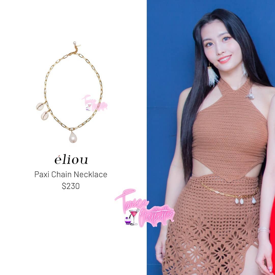 Vòng cổ của eliou lại được stylist biến tấu thành thắt lưng cho Momo.