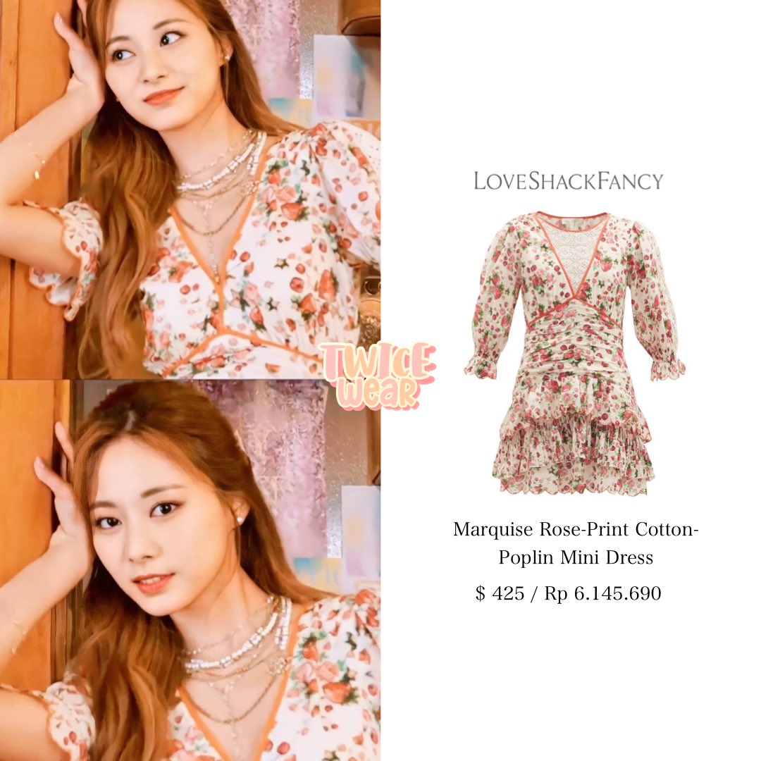 Trong màn solo của Tzuyu, khi cô nàng diện mẫu váy hoa của Loveshackfancy, stylist đã khâu bớt phần ngực xẻ chữ V giúp cô có được hình ảnh kín đáo, không phô trương vòng 1 quá đà. Màn tinh chỉnh nhỏ xíu nhưng tinh tế, giúp Tzuyu có hình ảnh kín đáo hơn hẳn.