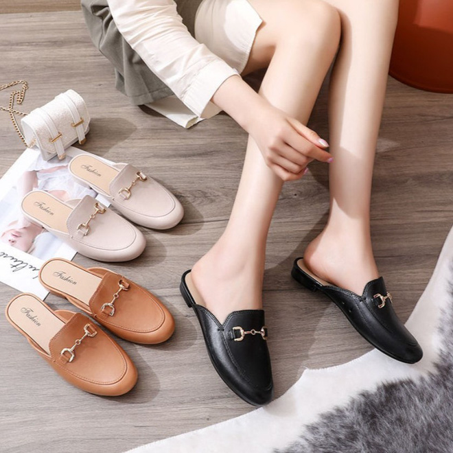 Những đôi tông xỏ ngón loẹt quẹt tiện thì tiện thật nhưng vào trời mưa ẩm ướt thì vừa dễ trơn trượt, vừa dễ bị bắn nước bẩn lên quần áo. Chưa kể bạn không thể đến sở làm với đôi dép như vậy được. Thay vì dép tông, bạn hãy chuyển sang đi một đôi mules chất da/ da bóng hoặc một đôi dép lê có phần quai chắc chắn chẳng bạn. Mules cũng nhanh khô hơn các kiểu giày dép khác nên rất hợp lý để đi vào ngày mưa gió mà vẫn giữ được nét thanh lịch, nghiêm túc khi đi làm.