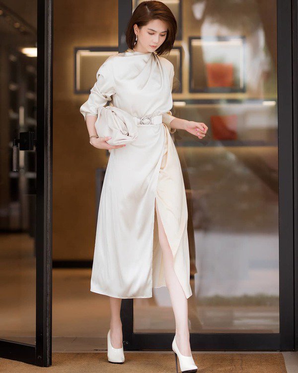 Che đi vòng 1, Ngọc Trinh lựa chọn tạo điểm nhấn và sức hút cho phong cách bằng việc khoe ra vòng eo thon gọn hay đôi chân dài cực phẩm. Có thể nói, cách tạo khoảng hở ở vòng 2 hay nhấn mạnh vào đôi chân đã tạo nên một hình ảnh Ngọc Trinh duyên dáng và hút mắt hơn rất nhiều, không hề đem tới cảm giác phản cảm nơi người nhìn như khi phô phang vòng 1.