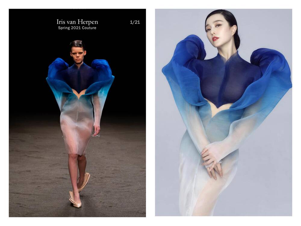Trước đây, Phạm Băng Băng từng nhiều lần diện các thiết kế cao cấp của Iris van Herpen trong các sự kiện lớn trong nước và liên hoan phim tại nước ngoài.