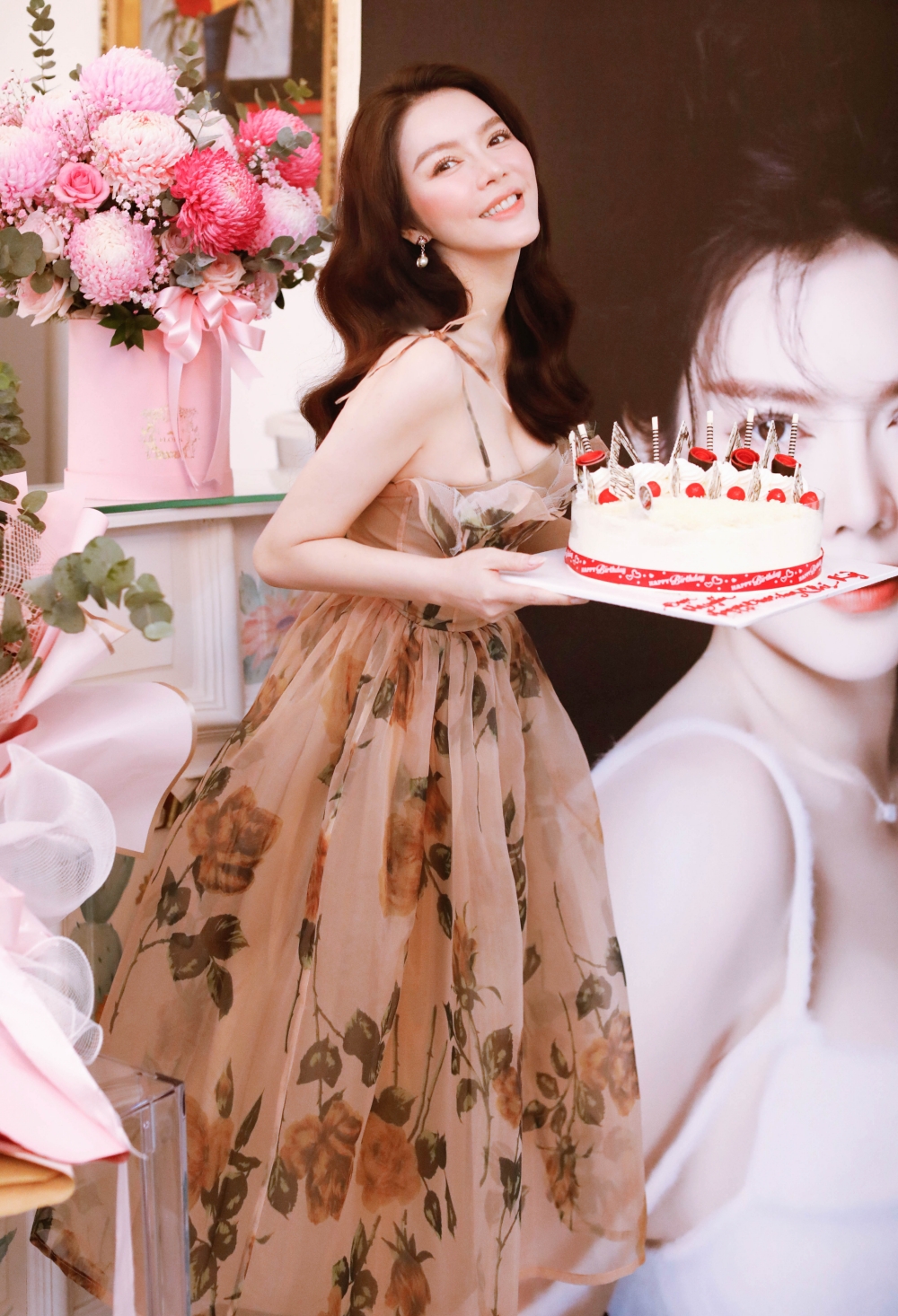 Nữ diễn viên lựa chọn cho mình chiếc váy hoa đơn giản, kết hợp cùng kiểu tóc uốn nhẹ giúp hình ảnh trở nên ngọt ngào nhưng không kém phần quyến rũ, sang trọng.
