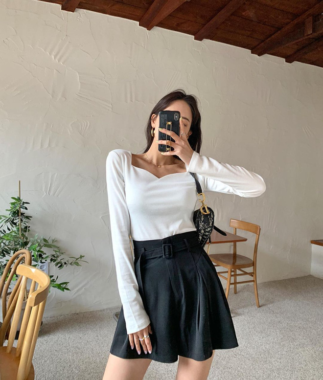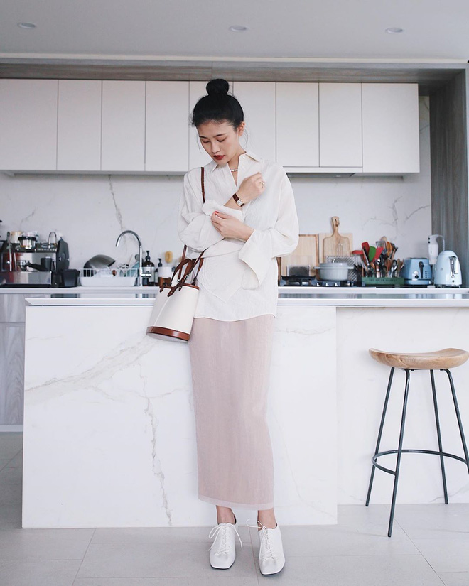 Thay vì chân váy cạp chun, các nàng có thể tìm kiếm sự thay thế ở chân váy cạp to, kèm thắt lưng hoặc điểm nhấn ở eo. Nếu nàng nào vẫn muốn mặc chân váy cạp chun cho thoải mái thì hãy khéo léo che bằng áo tà dài để "lừa thiên hạ" nhé.