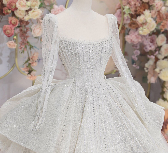 02/01/2021 21:17Váy cưới của Khánh Linh tại Hà Tĩnh: Được làm từ 30.000 viên đá Swarovski